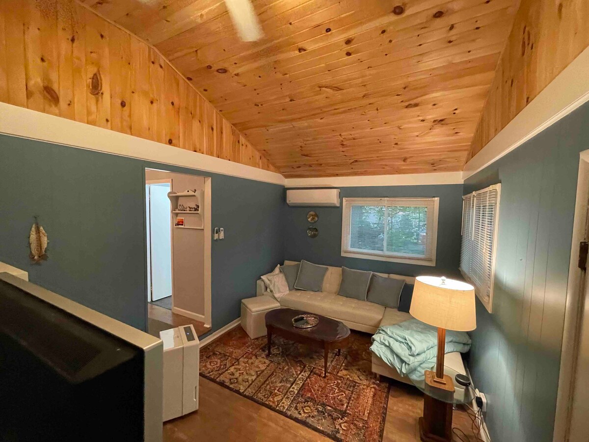 Our cozy 1930's cottage sleeps up to 6. The open-concept living/dining area has a queen sleeper sofa adjacent to a full kitchen. The separate bedroom has a queen-size bed and is located next to a small bathroom with vanity, toilet and shower. A spiral staircase leads up to a lofted area that provides another space to get away and relax, with twin mattresses on 2 separate built-in platforms. Included is Comcast Xfinity WIFI and Cable Television. Central Air. And extra coffee in the fridge .