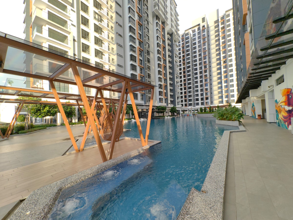 Stunning Sea view from the house. Chilling at the balcony. Swimming pool@level 6 Living Room, Queen Size bedroom, private sofa bed corner with curtains. Ensuite bathroom with hot and cold water shower. Large refrigerator with ice cube , mini kitchen with electric cooker, pot,plate,spoon,fork are available . Light cook at the kitchen. Filter water machine hot and warm. Please select 3 guest if you need single bed setting convert from sofa bed.