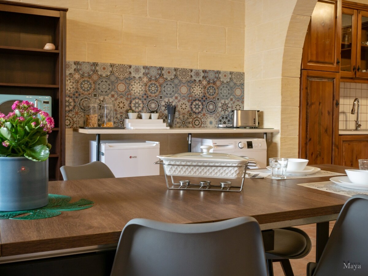 Nestled between the picturesque Gozitan landscapes, in the charming town of Qala, you will find this cosy maisonette which is sure to give your stay that extra bit of magic. The maisonette was built in typical Gozitan style which boastfully displays the honey coloured limestone found in the Maltese Islands and holds within it beautifully locally crafted wooden furniture which gives the whole place a rustic feel. It is filled with natural light and flaunts spectacular views of Gozitan countryside