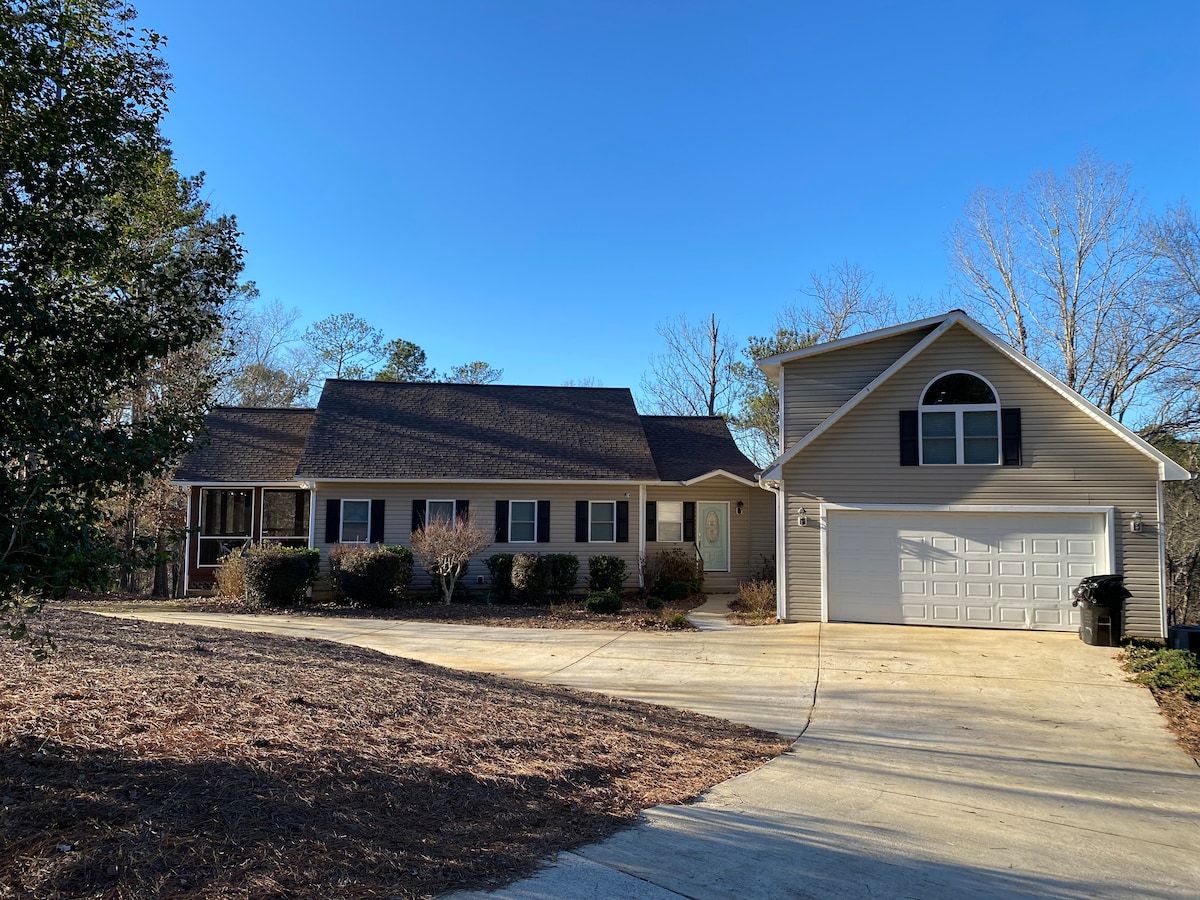 Workcrews Welcome! Discounts for longer stays..Family friendly cottage on Lake Wedowee, just steps from your own private dock. We have 3 levels, each featuring a bedroom and bathroom, allowing everyone their own space. Main level features an open air deck& lower level features a screened porch area large enough for the whole family to enjoy. While you are here, enjoy the private cove or take a trip on one of our complimentary kayaks. We are just minutes from all the popular lake spots.
