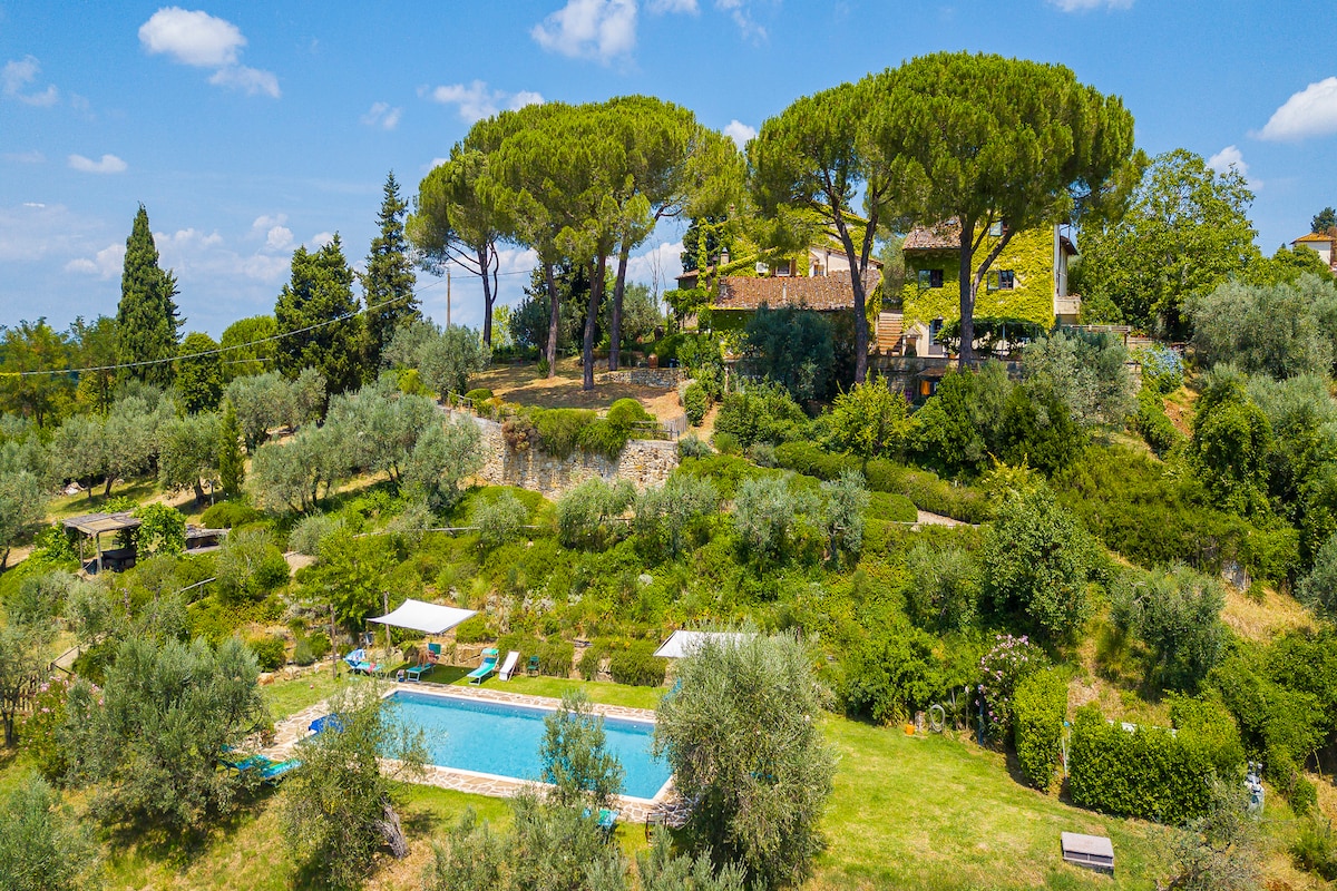 We are a Farmhouse at only 9 km from Florence in the beautiful Chianti hills with gorgeous pool and free private parking We are a small organic farm producing our own wine Chianti Classico and extra virgen olive oil Only 1 hour driving to the most important city of Tuscany such as Pisa, Siena, San Gimignano, Pienza, Monteriggioni, Lucca and Arezzo. Public transportation to Florence and Greve in Chianti (bus stop at only 200 mt from us)