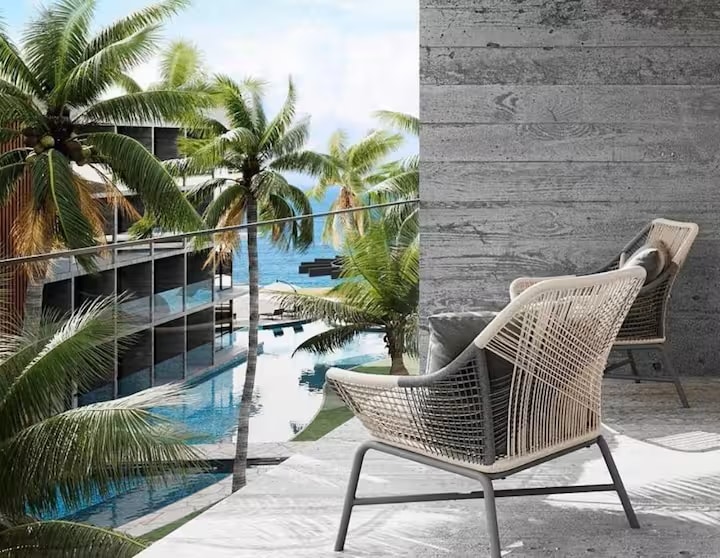 A luxurious and stylish resort for the whole family that enjoys a good place to rest and enjoy the holidays. It has everything you've always dreamed of in a luxury and comfortable stay, the resort is right on the sand, located on one of the best beaches in Muro Alto, with heated pools, in a romantic environment facing the sea. Come and get to know the Porto de Galinhas beachfront resort better. On weekends and holidays, we do not offer apartments with pool and sea views on Airbnb
