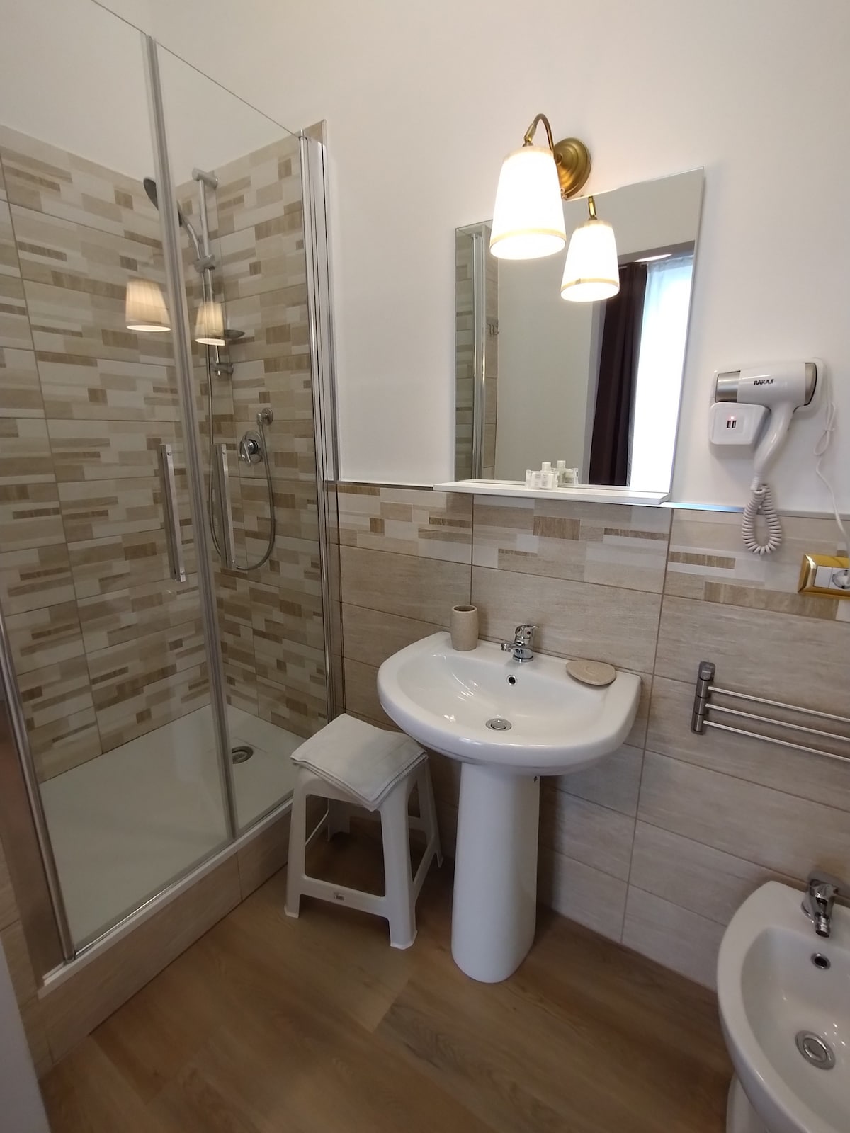 Tutte le camere sono dotate di ogni comfort: internet WiFi gratuita, TV LED 29” (digitale terrestre e satellitare), minibar, aria condizionata e riscaldamento split, cassaforte digitale, materasso antiallergico, cuscini soft e rigidi, reggivaligia. Il bagno privato è dotato di cabina doccia, asciugacapelli, scaldasalviette, set cortesia e set biancheria. La camera è non fumatori. Durante il soggiorno potrebbero verificarsi dei rumori a causa di lavori di ristrutturazione al piano di sopra.