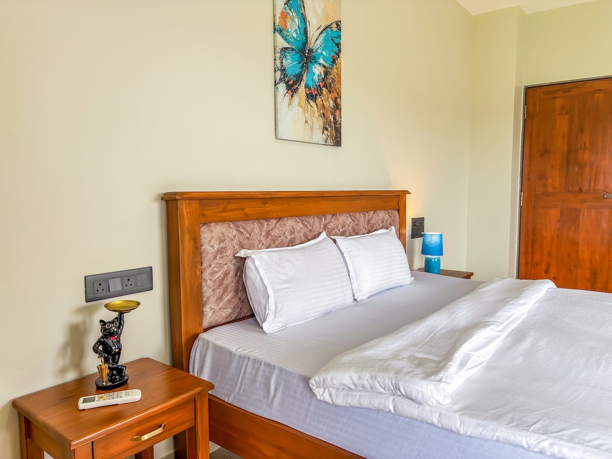 Independence, simplicity and modern luxuries in a 1BHK with hall, equipped kitchen, master bedroom with attached bathroom and a large private balcony. Sink into the 8-inch luxury king mattress, relax by the pool over snacks and drinks, or work comfortably with fast Wi-Fi while our team cares for the rest. Just 7 minutes by bike from Baga Beach, it’s your full Goan extravaganza on a smart, budget-friendly stay. Ideal for couples, remote workers or small families with comfort and homely freedom.