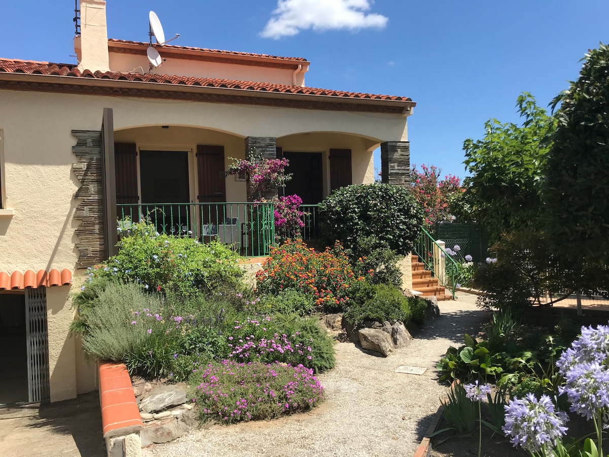 pleasant house, very sunny, facing the Alberes. Spacious with its different living spaces. 3 bedrooms, a large bathroom with balneotherapy, a shower, a toilet. A large equipped kitchen. A cozy living room. Close to shops. 5 minutes from Argeles village. A private swimming pool not overlooked with views of the Canigou and the Alberes. a beautiful covered terrace. barbecue and plancha. Garden. Close to Spain (Perthus 20 minutes) Collioure and its beautiful beaches 20 minutes away;