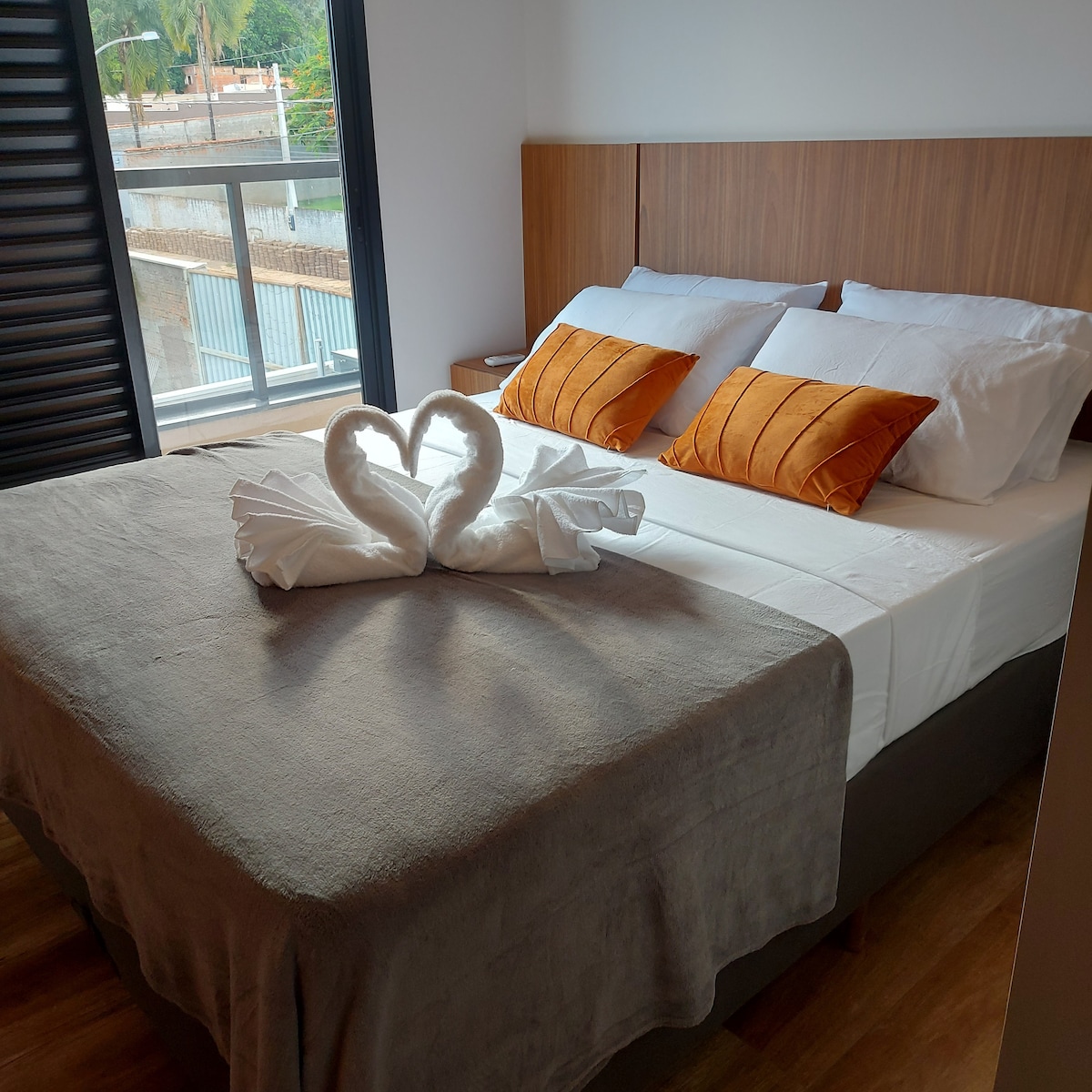 Venha curtir Rifaina com conforto e privacidade em um apartamento moderno e aconchegante. Ideal para casais ou pequenas famílias, o espaço acomoda até 4 pessoas com todo o conforto necessário. 🛏️ 1 Quarto com cama queen + sofá-cama na sala ❄️ Ar-condicionado split 🍳 Cozinha completa 🪢 Rede de descanso para relaxar 🚗 2 vagas de garagem 🚤 Permite entrada de jet ski A 800 metros da represa e do centro da cidade, lugar perfeito para curtir a praia de Rifaina sem precisar pegar a estrada.
