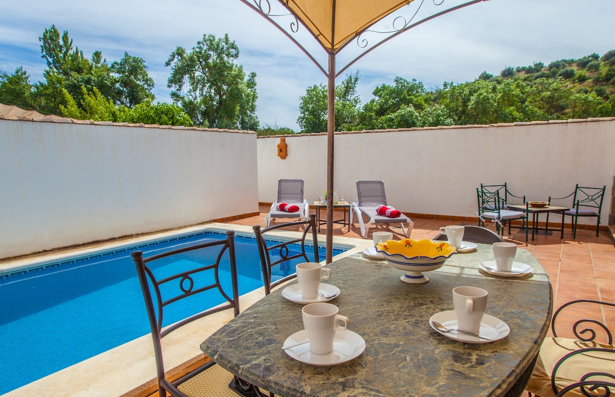 Quiet rural house in the mountains with open sea views. Sunny terrace, silence, and nature all around. Perfect for winter stays: mild temperatures, lots of light, and beautiful sunsets over the Mediterranean. Ideal for couples looking to relax, walk, and enjoy Andalusia away from crowds. In spring and summer, the house becomes a private retreat with a large private swimming pool, complete privacy, and air conditioning for maximum comfort. Easy access from Málaga Airport, yet completely peaceful.