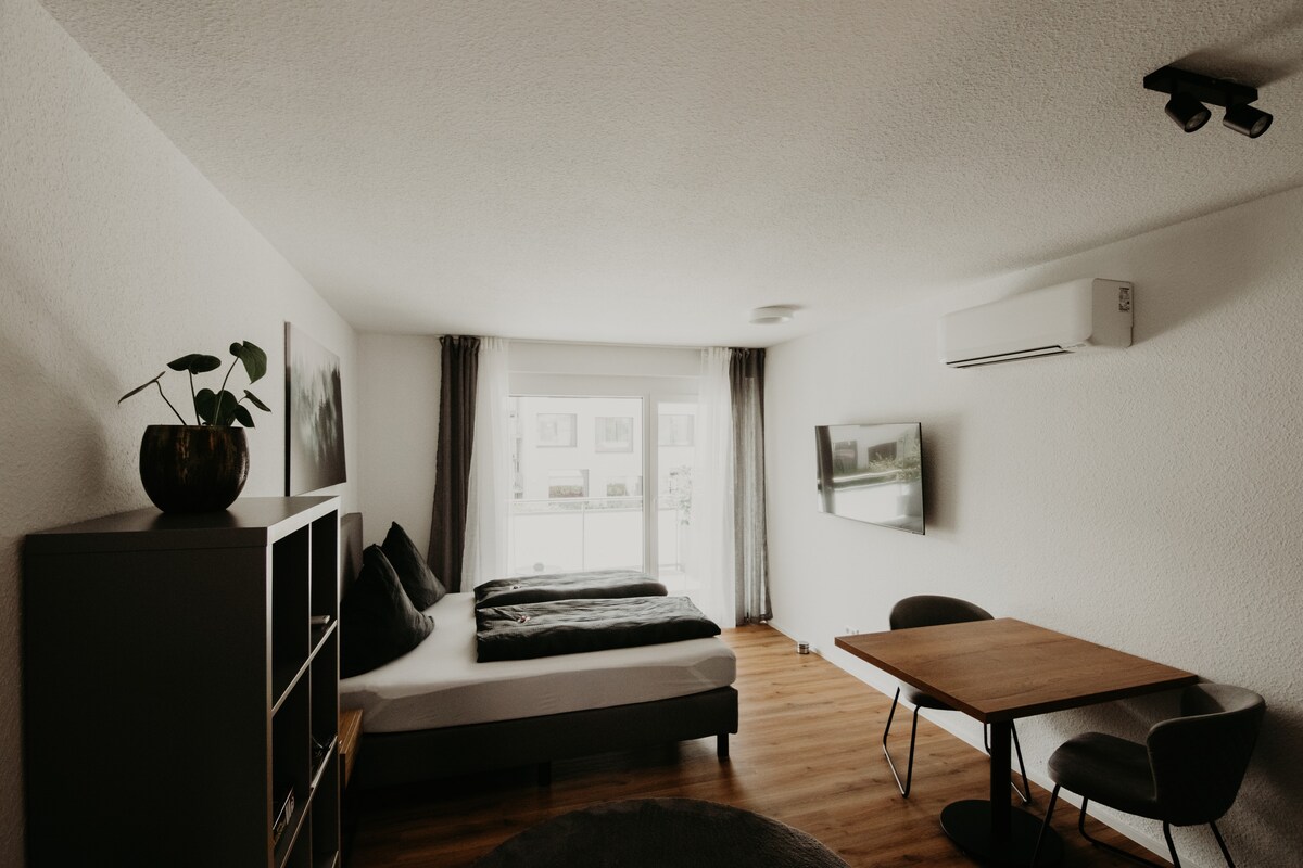 Modern and newly designed one-room apartment near Europa-Park. The apartment is centrally located connected to a train station and a bus stop. The train station is a 5-minute walk away. Parking for cars is available directly in front of the property. EuropaPark is only 15 minutes away from the property by public transport. The accommodation is also equipped for longer stays with an equipped kitchenette and washing machine.