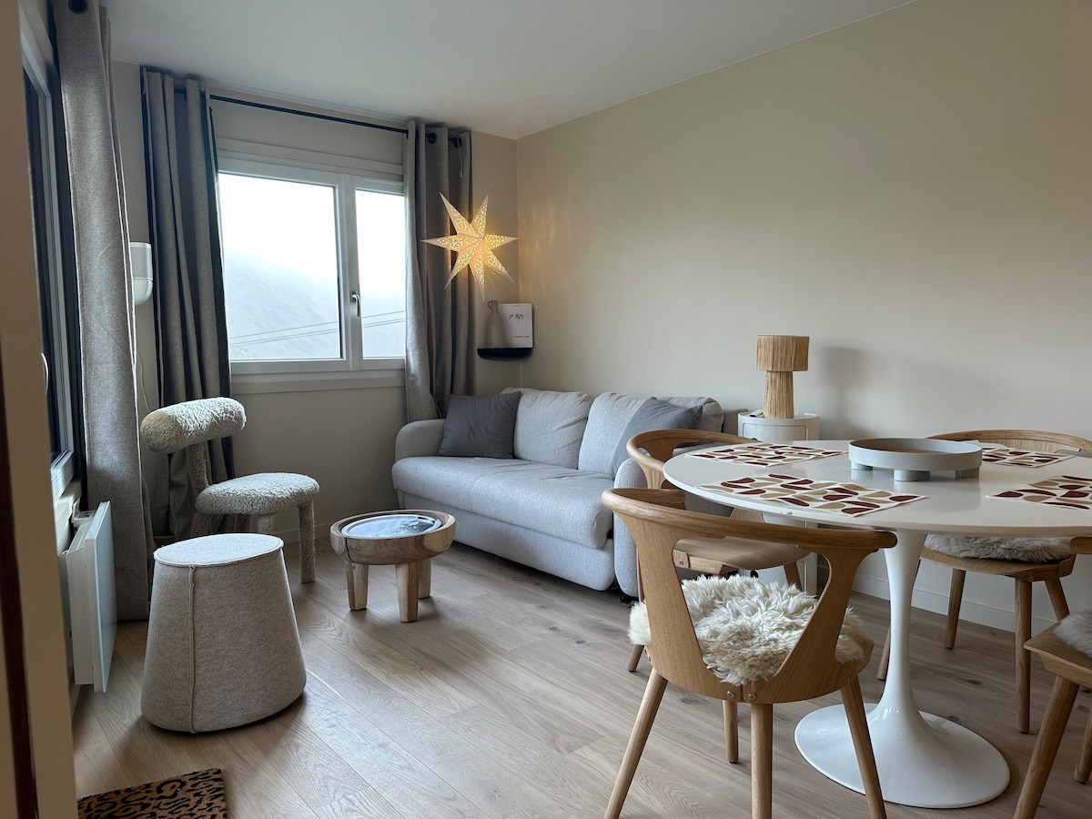 Get high in our cozy, bright 62m2 apartment completely renovated in 2024. Cozy atmosphere and panoramic view of the resort from its 2 sunny balconies. Ski-in/ski-out. New amenities and quality bedding. The Aster residence is located in the Crozats district, on the heights of the resort, quiet assured but animation and shops accessible by 2 elevators. Family apartment, you can enjoy board games and books