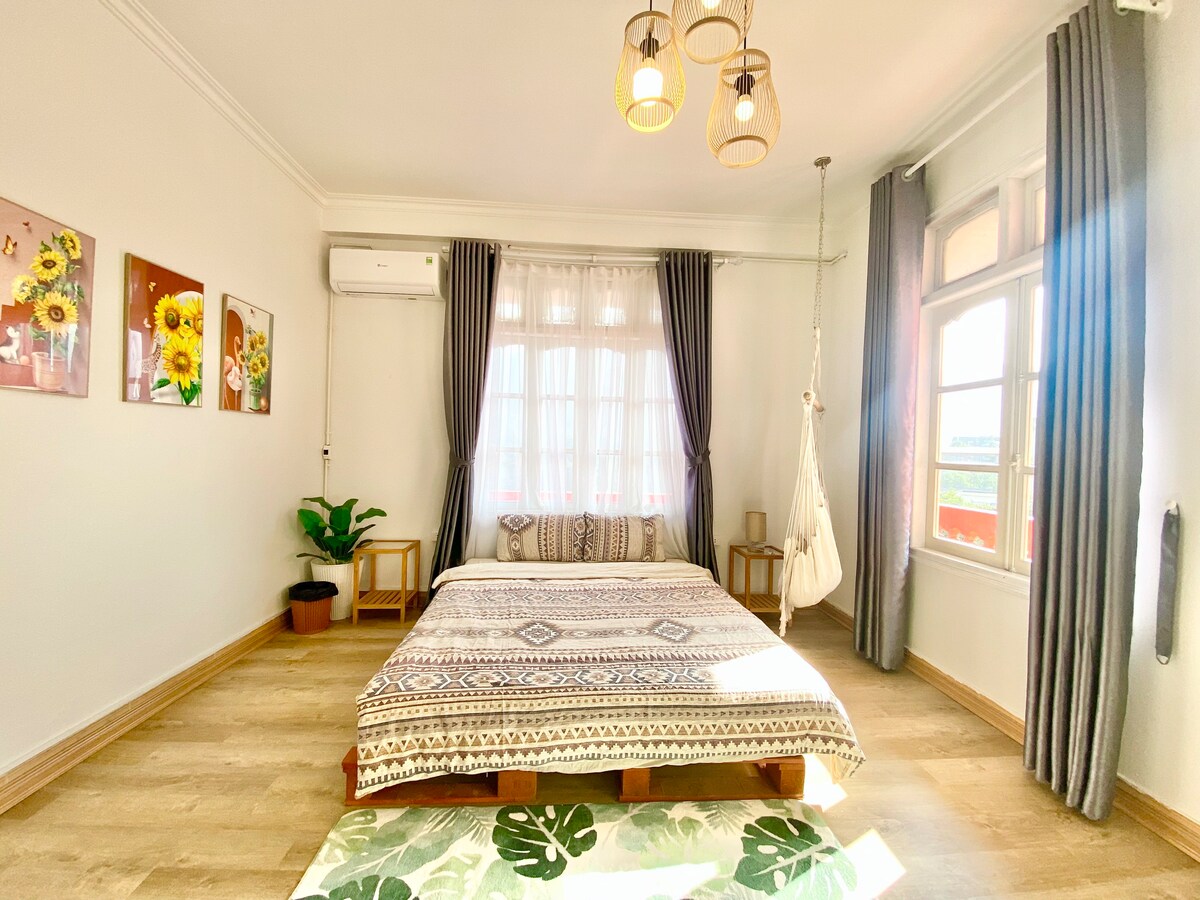 Escape to Vi’s House, a beautifully designed villa just outside Sapa, where modern comfort meets peaceful natural surroundings. The villa features a spacious bedroom with an ensuite bathroom and a charming wooden bathtub, a cozy single bedroom with shared bathroom access, and a large attic with a ground-level double bed—ideal for families or extra guests. It also includes a fully equipped modern kitchen, a small outdoor swimming pool surrounded by greenery, and a tranquil BBQ.