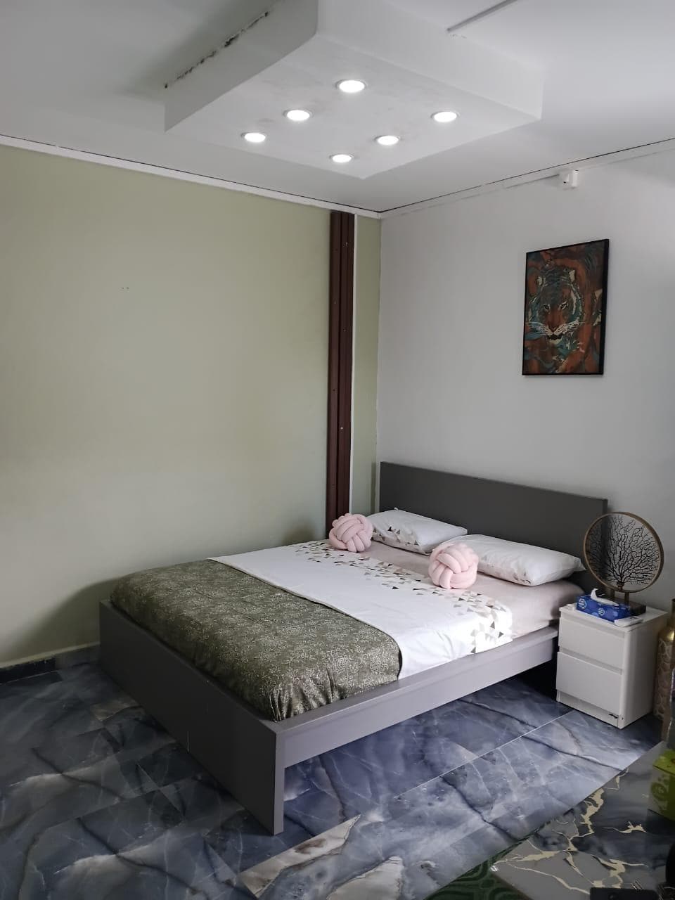 Discover our green interlude, in complete tranquility in Kaweni. (Opposite the Tribunal de Grande Instance) Located on the ground floor, the two-room apartment has a water reserve system in case of a power outage. The perfect place for a business stay or for your vacation.