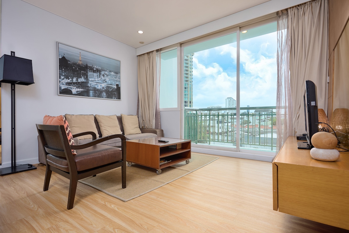 A spacious entire apartment with private bath, kitchenette, bed, and designated working area. Enjoy the wide windows for plenty of sunlight, providing cool breeze, increasing airiness for a more relaxing stay. Enjoy all the conveniences of city-life, including: - 5 min to BTS Asok, MRT Sukhumvit - 5 min to Terminal 21, Emporium/Emquartier and Benjasiri Park - 1 min to 7-11 convenient store - Lots of street food, cafe and taxi/bikes