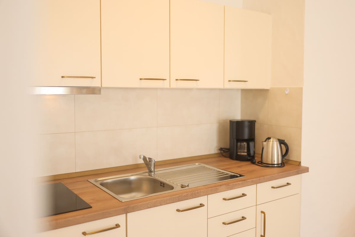 Bright, modern furnished apartment centrally located yet in a quiet location. Open living and sleeping area with king size bed, large windows, fully equipped kitchen. Wi-Fi included, parking, self check-in possible. Close to downtown, good connection, shopping within walking distance. Walking/bicycle distances: Train station 1.1 km, Central bus station 900 m, Swimming pool 650 m, Bosch Plant 4 and Bosch Training Center 1 km each Downtown 1.3 km Perfect for couples, solo travelers or business travelers.