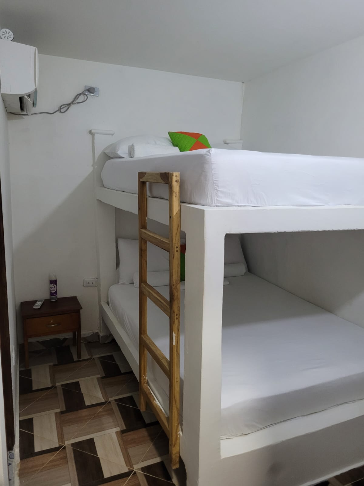 Small room with the basics, a place to store your belongings with keys, private bathroom, points to take into account are safe concrete bunk beds and orthopedic Casatta mattresses, no TV or work area, a simple nightstand