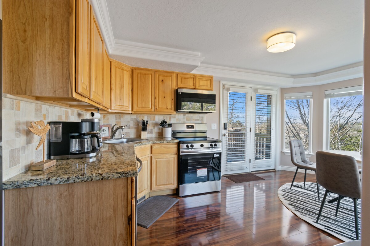 You'll have the entire private, ground-level 2B1B guest suite sitting on the hillside, with a separate entrance and two-car garage. Perched high above the city, enjoy panoramic mountain & city views, a private deck, personal sauna, full kitchen, in-unit laundry, and the cozy bohemian decor. Relax in queen beds with comfy linens, and unwind with the 75" TV. Just 5 mins to groceries & close to restaurants, golf, ski, outlets, hikes, paragliding, and so much more!