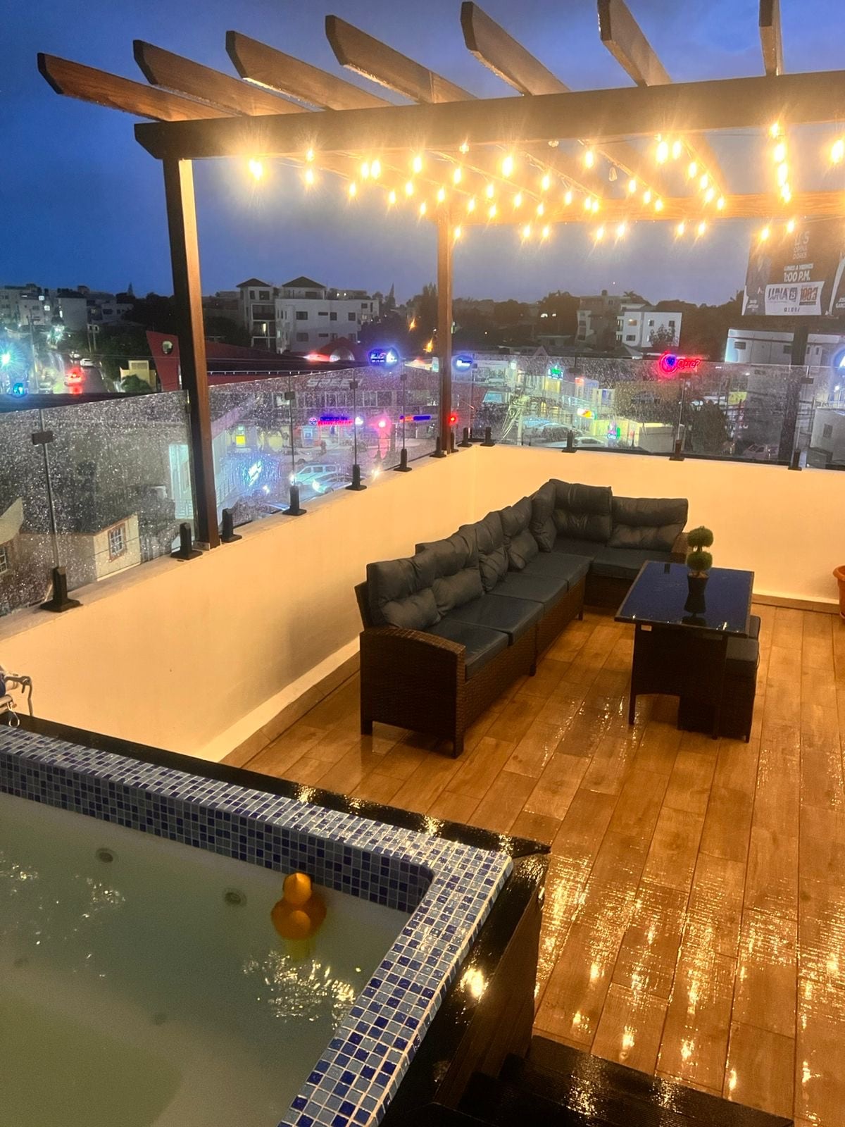 This luxury penthouse with very comfortable details, specially selected for special guests like you. Takes you out of the regular places in the city with a wonderful mountain view, This home is near to everything in Santiago, including supermarkets 24hrs, stores,bar, hospitals, Pharmacies and more. Share Pool and Gym. We offer a Private BBQ,Jacuzzis(Hot tube)Sala Start(Tv Room)Bar,a Ruff top, 2Parking Spots,3 bedrooms,an additional, sofa cama & a workspace. We are more than happy to welcome you.