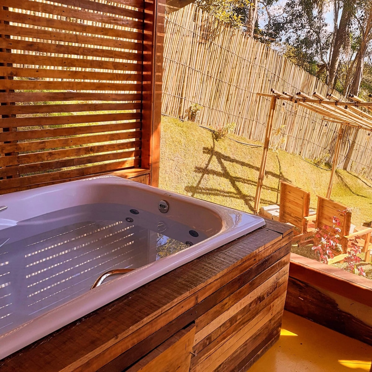 Cabana Pekena is surrounded by the greenery of Serra da Mantiqueira. It is totally private, including the whirlpool in the photo. Built in the midst of the nature of Santo Antônio do Pinhal, it is a perfect place for couples in love! A cozy cabin, surrounded by mountains and fresh air... a romantic and stylish space. Every detail has been planned so that you have an unforgettable experience, accompanied by an incredible view of the mountains and a stunning sunset!