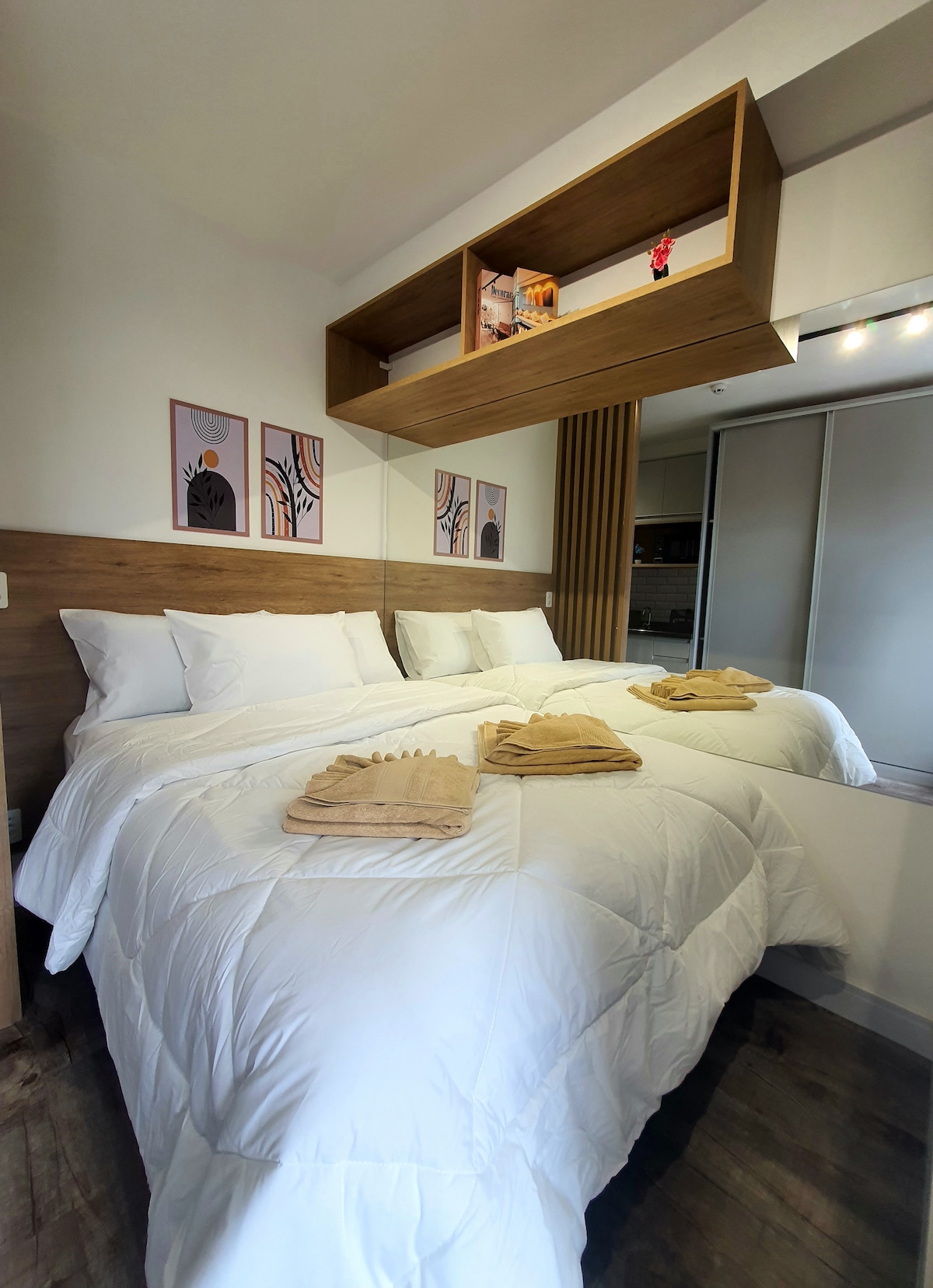 Modern 45m² apartment in Moema with a spacious balcony and private parking. Stylish urban décor with queen bed, fully equipped kitchen, AC, high-speed Wi-Fi and smart TV. The building offers full amenities and 24/7 security. Prime location near Ibirapuera Park, top restaurants, bars and shopping malls. Perfect for business, leisure or extended stays.