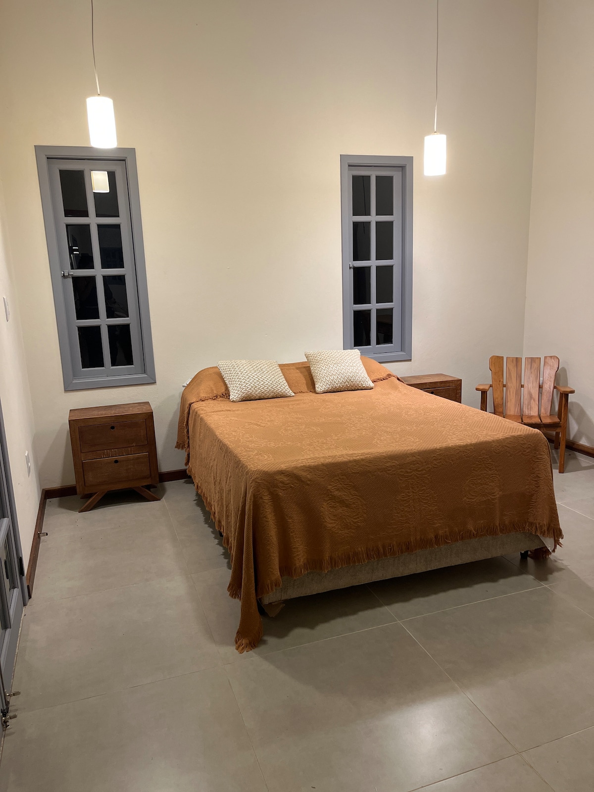 ⚠️ Access via stairs. We ⚠️ don't serve meals, but there are excellent bakeries and cafes nearby. Stay at Casa das Fontes, a charming and modern loft in São Lourenço. 800 meters from Parque das Águas, it offers air conditioning, a bed with comfortable bedding, fast Wi-Fi, an equipped kitchen and rotating parking. The environment is quiet and safe, with practical self check-in for your total autonomy.