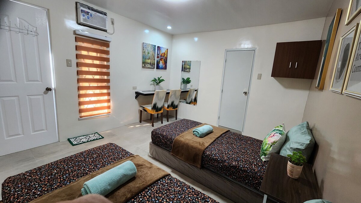 Your Big family will be close to everything when you stay at this centrally-located lovely budget-friendly place. Jacob's House is your home away from home. It can accommodate 10-12 pax. It has 3 bedrooms and has 3 double deck beds including A/C. Equipped with 55 inches google tv with Wifi and Netflix. It has hot and cold shower. Conveniently accessible to all public transportation, within walking distance to subdivision parks, 2-3 mins to KCC Malls, Robinsons Malls, and SM Mall.