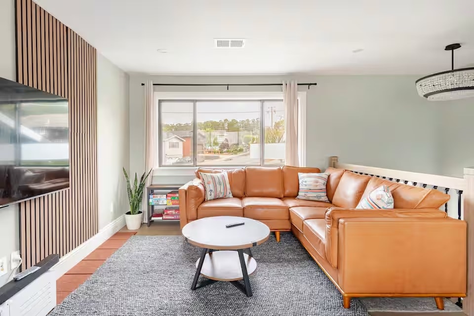 Unwind in style with breathtaking ocean views and golden sunsets at this remodeled 2B1B coastal retreat—just 15 minutes from SFO and San Francisco. Perched on the second floor of a duplex and steps from the beach, it’s ideal for whale watching, surfing, or peaceful seaside strolls. Oversized windows fill the space with natural light and stunning views. Enjoy brand-new smart appliances, stylish furniture, free under-unit parking, and voice-controlled lights and TV for a seamless, relaxing stay.