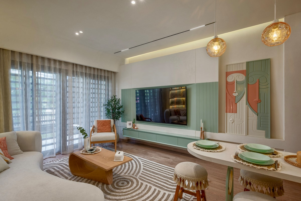 A stylish two-bedroom retro retreat in Privado, Madinaty’s gated community. Designed in refreshing mint and warm amber tones, it features a large private garden, three comfy beds, and a spacious living area with a big Smart TV. Perfect for families seeking comfort and calm, with cafés, parks, and the Open Air Mall just minutes away — where color, space, and serenity meet.
