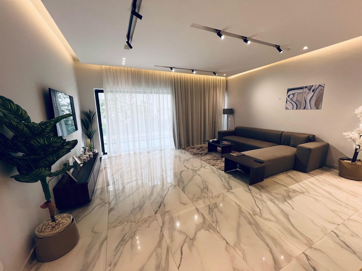 Take it easy at this unique and tranquil getaway.its very comfortable place with harmony garden🍀 view ,very beautiful and quite nice place for meditation and relaxing🌅. next to market and facilities. come on and enjoy your self. ❤ the place has all equipment and facilities wash machines ,air conditioning , smart tv , wi fi ,qettil with master room with big king size bed 240cm wedth and second room with 2 big beds each one 120cm and very comfortable living room with American kitchen