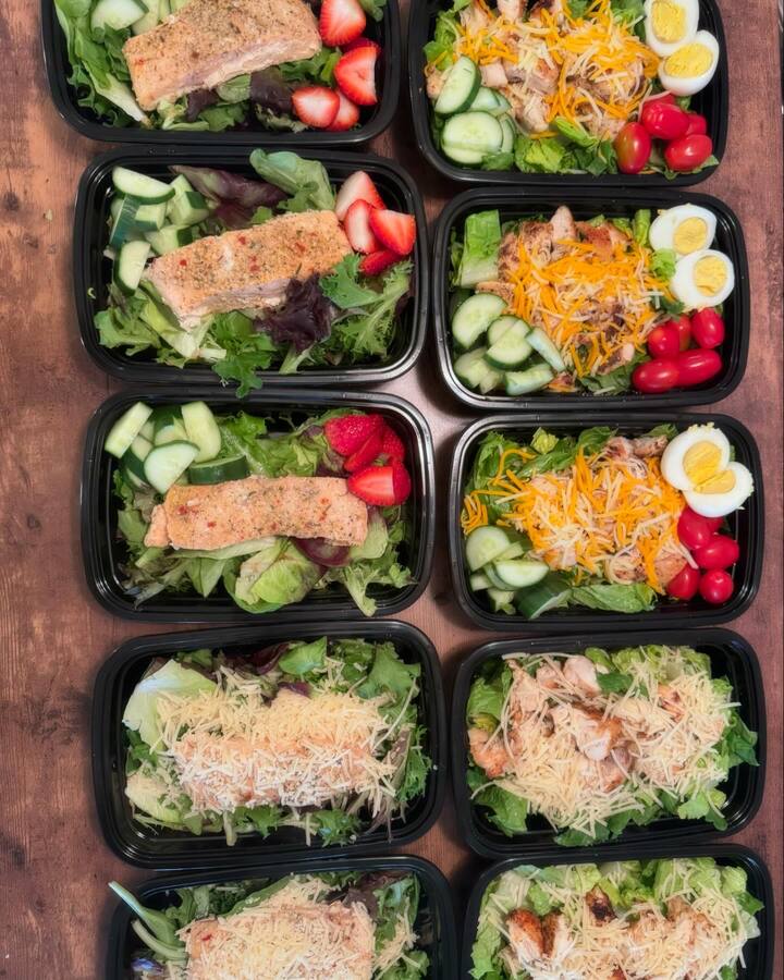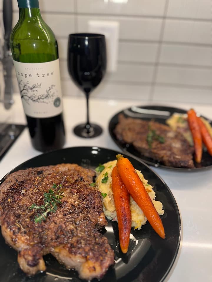 Guests plates are individually plated and includes, chef’s choice of salad, 1 shared appetizer, 1-2 entree meats, 2 sides, & 1 dessert
