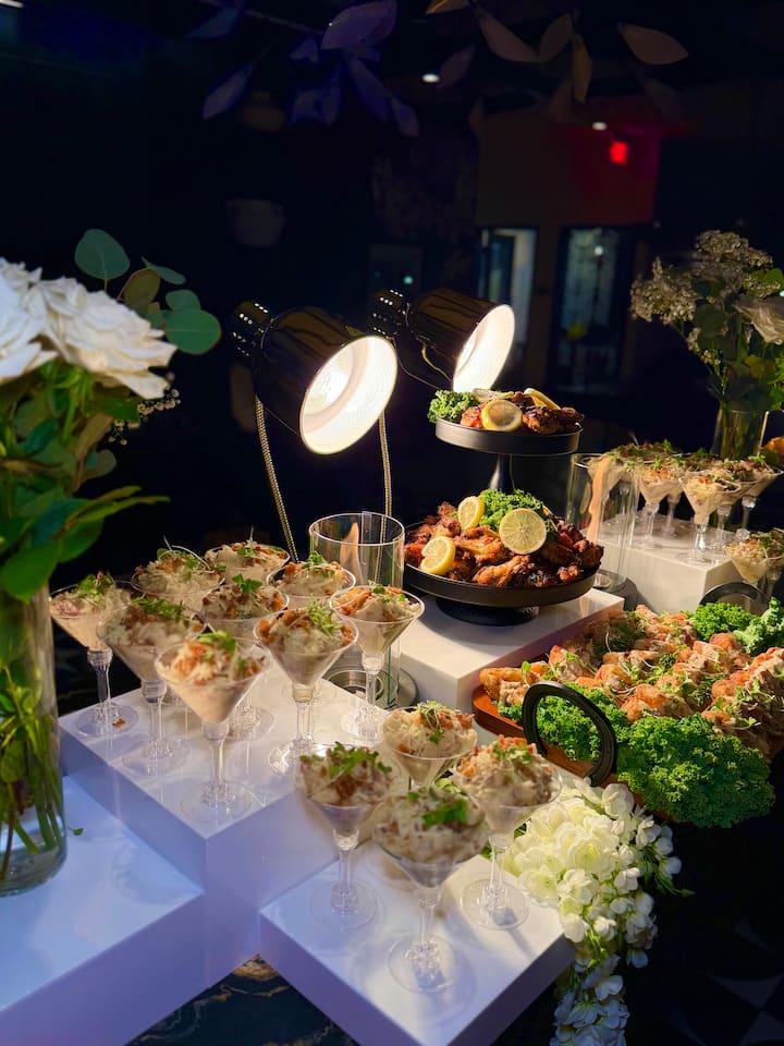 Select up to 6 appetizers from a large selection of light bites to enhance the variety of menu offerings for you & your guests. Appetizers are arranged in a luxury chef’s spread! Great for large groups.