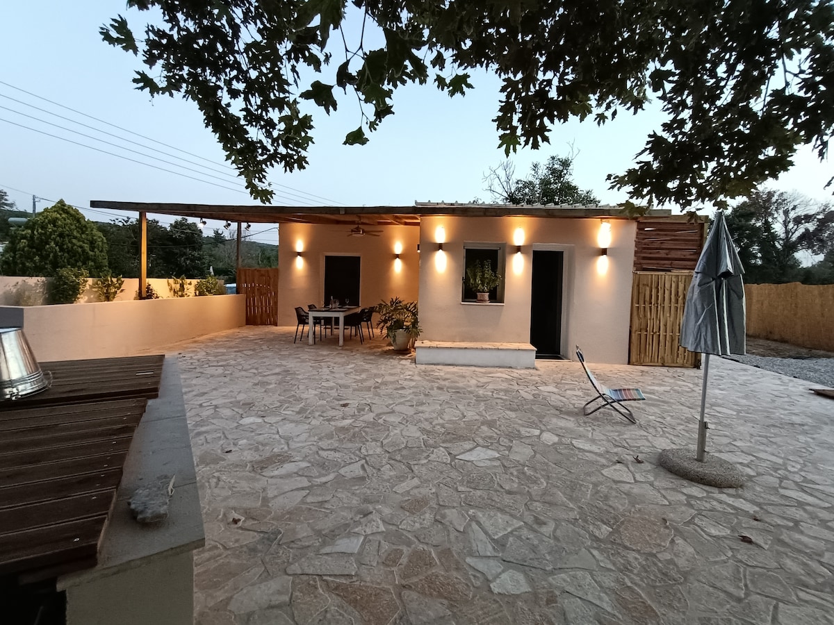 The authenticity of the surrounding environment and the house, 200 years old stone building , inspired us to create a beautifully and functional space, full of light, colors and singing birds, which leave from the open balcony doors to pass .The amazing views from the patio and the garden, to the Sea Surface and the green hills, heal and calm.Ideal for visitors who are looking for the genuine side of the island. Close to mountain, beaches, (10 minutes away by car) , Corfu town (25 min