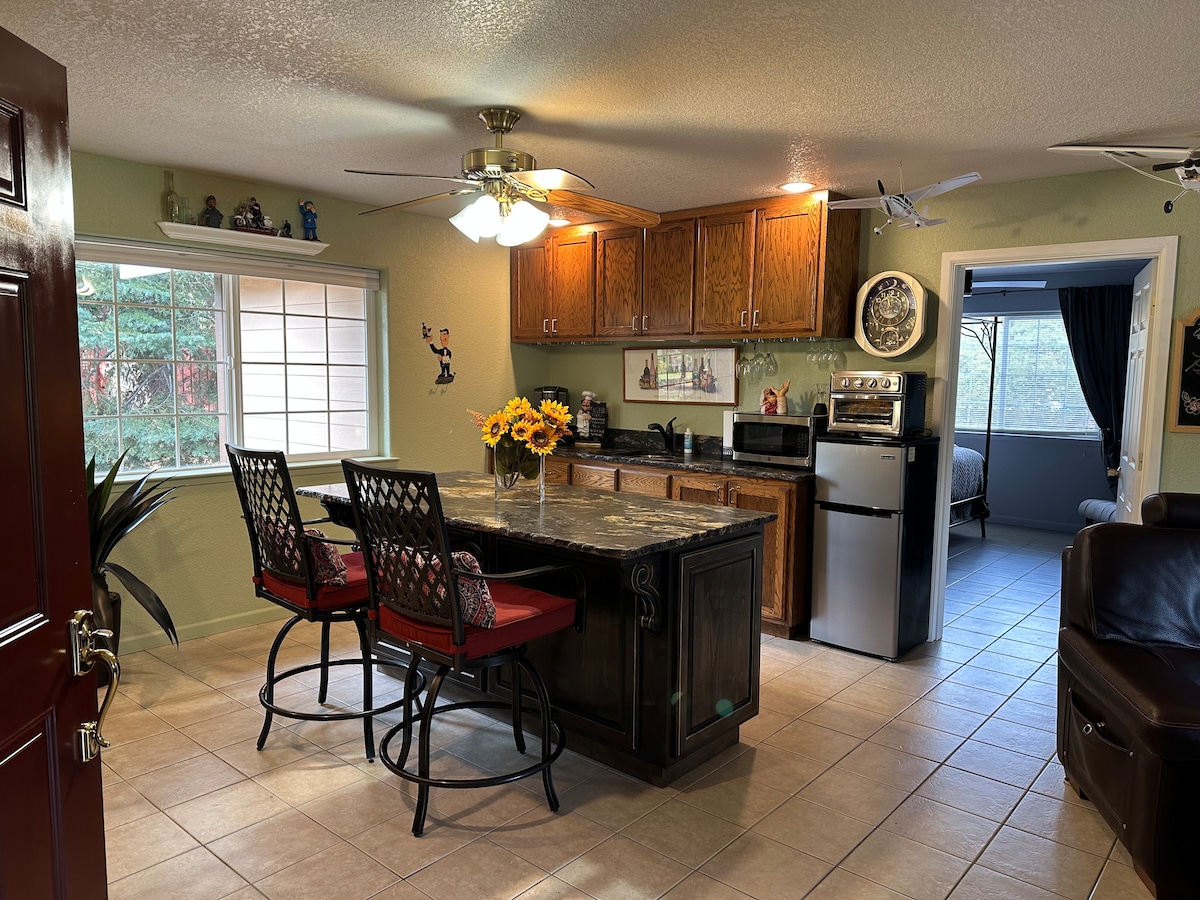 The Blue Haven, located in the friendly Gateway Community is the perfect place to rejuvenate and unwind. Kick back and relax in this calm, stylish space with all new amenities. The kitchen is fully equipped and prepped to make any meal. The firm queen bed and firm pull-out sofa are extremely comfortable with cooling mattress toppers and pillowcase covers. It is a 4-minute drive from downtown, a quarter mile from the headwaters, and .2 miles walk to the Peace Garden.