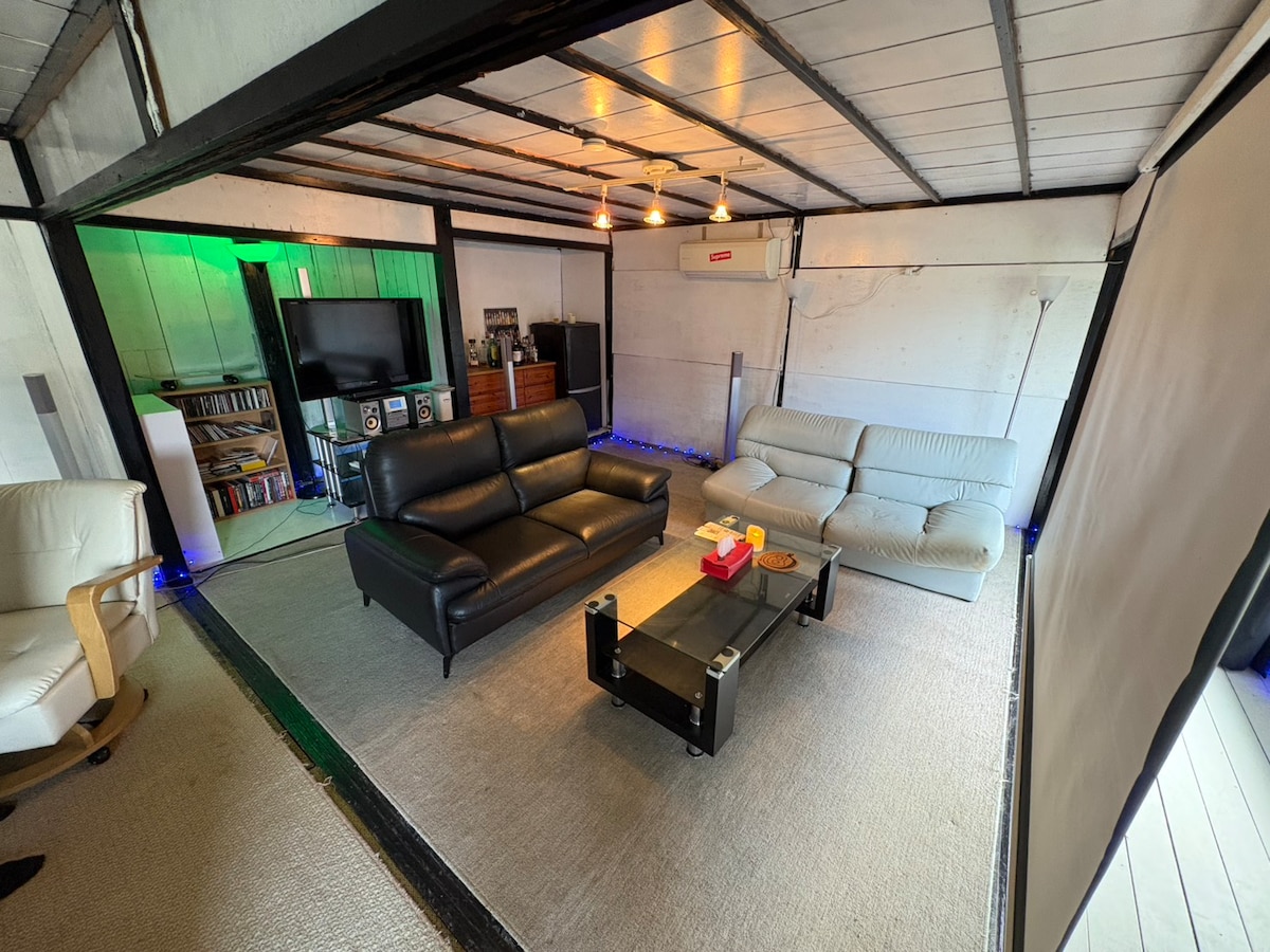 Experience true relaxation in a spacious, fully private sauna villa. Unwind in the jacuzzi and refresh your mind and body on a relaxation chair. The outdoor area features a large sauna where you can lie down, along with a jacuzzi, cold bath, kitchen, and BBQ grill—creating a luxurious space where you can enjoy meals while relaxing in the sauna. At night, enjoy complete relaxation by the bonfire. This spacious villa is perfect for large groups to enjoy together.
