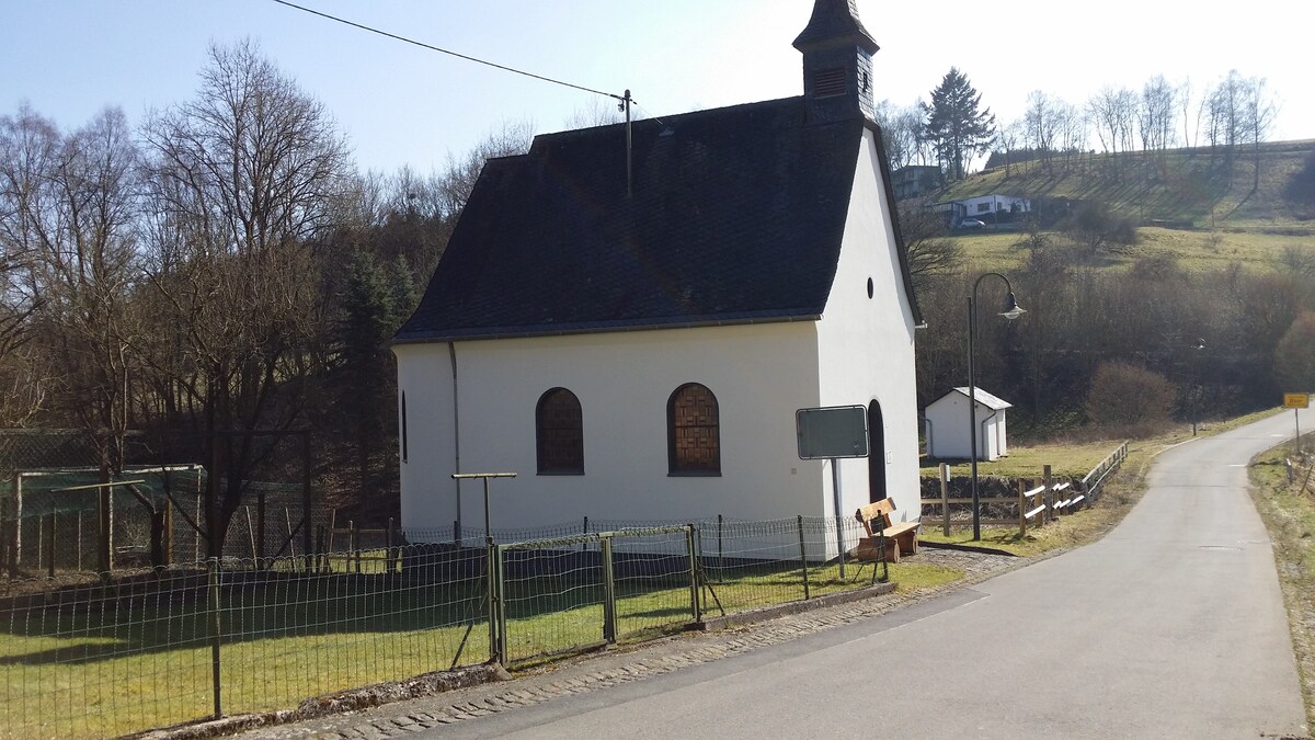 In the 60 sqm apartment with private entrance you will find everything you need for a vacation. 1 double bed + 1 sofa bed - space for max. 4 people - Parking in front of the house In a few minutes you are already in the forest, on the 588 meter high Michelsberg and can hike in all directions. By car, you can reach the Nürburgring, the Ahr, the Ruhrsee or Phantasialand Brühl in a good half hour. Shopping is 10 km away. Dogs are welcome by arrangement.