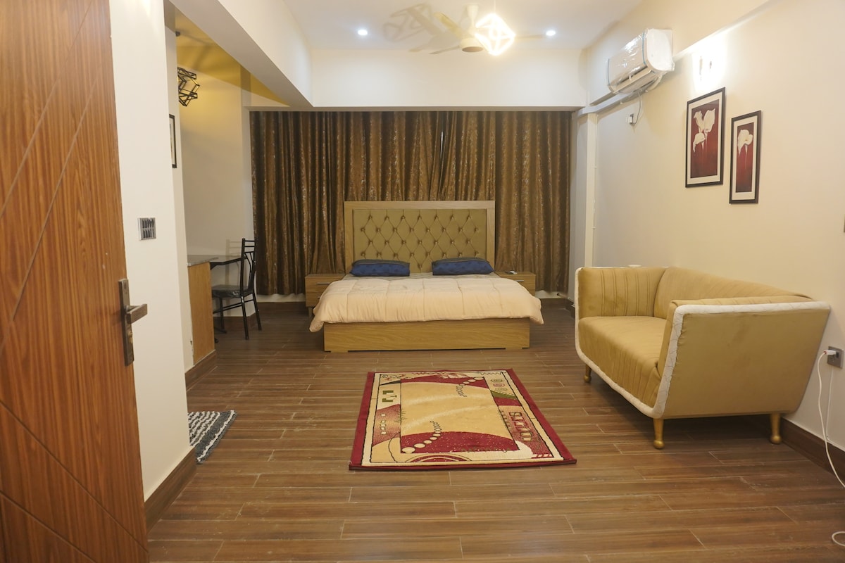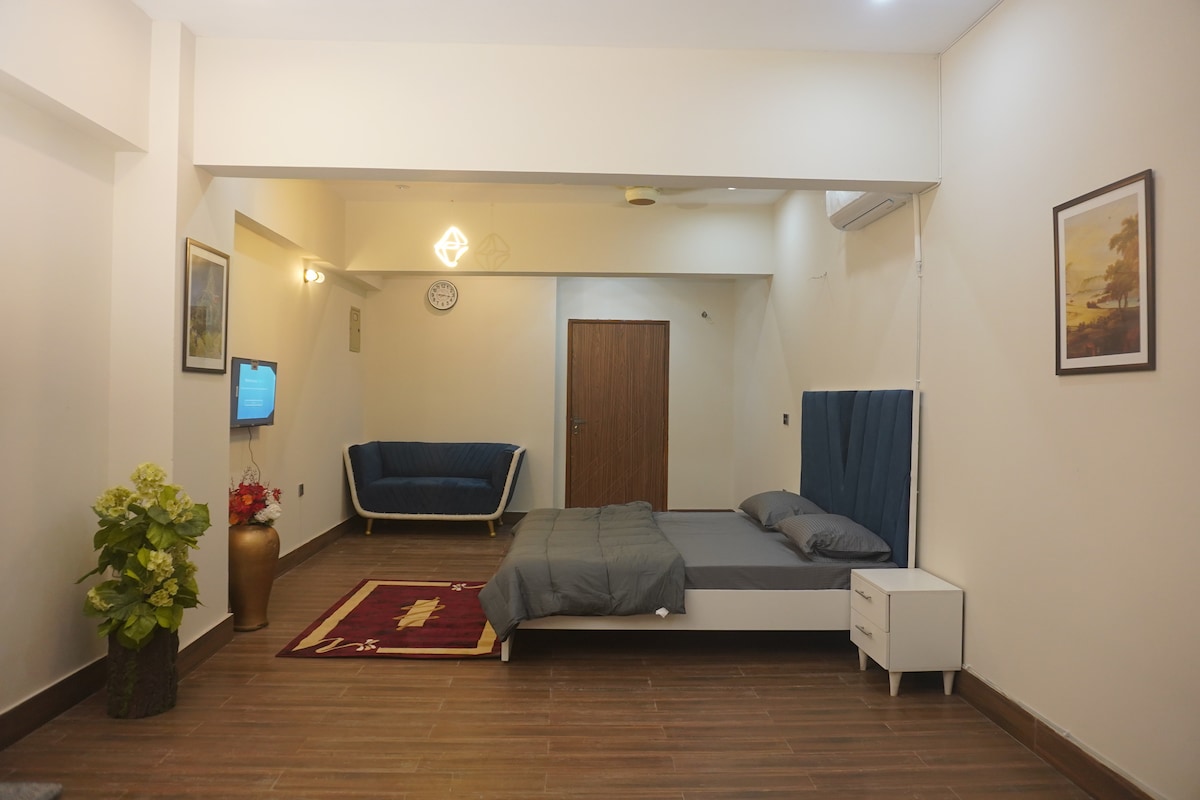An exquisite inn with amenities provided at a safest and well developed location of Karachi. Gulshan-e-Iqbal, located in close proximity to Airport, Hospitals, Malls, Restaurants, Halls and Amusement parks. The house is fully furnished with decency. Our efforts are not only to meet your necessities but also to provide a safe, peaceful and memorable stay. We assure our best services at most competitive rent and sperately charge drinking water and cleaning by Maid. kindly read Detail Note below.