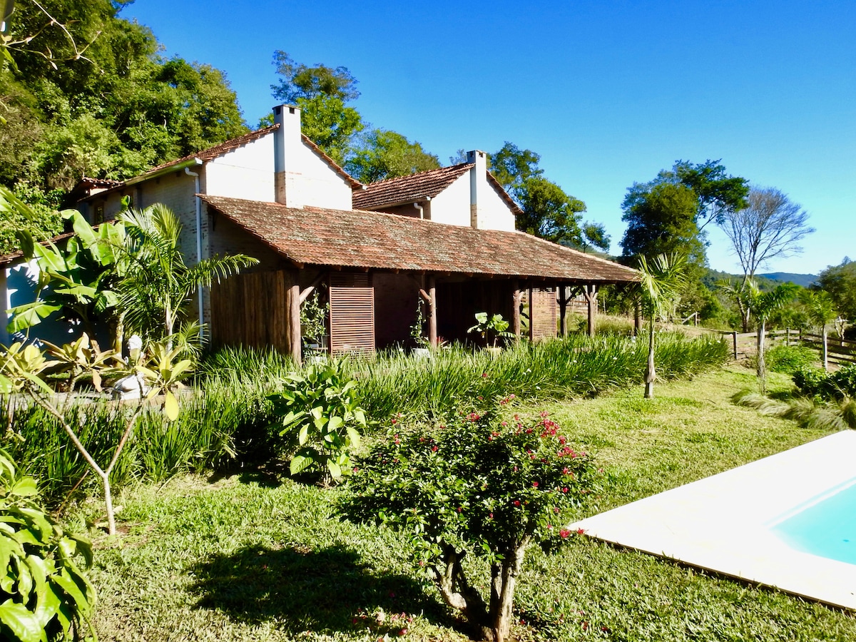 Exclusivity, privacy, tranquility and comfort! Enjoy a beautiful, super cozy barn-style house, inside a large private property, with total security. Start the day to the sound of birds, watch the sheep and horses grazing, and watch the sunset from the bedroom balcony. At night, relax to the sound of crickets and enjoy the whirlpool to renew your energy. The large garden offers a swimming pool, fire pit and space for fishing, ensuring moments of fun and leisure.