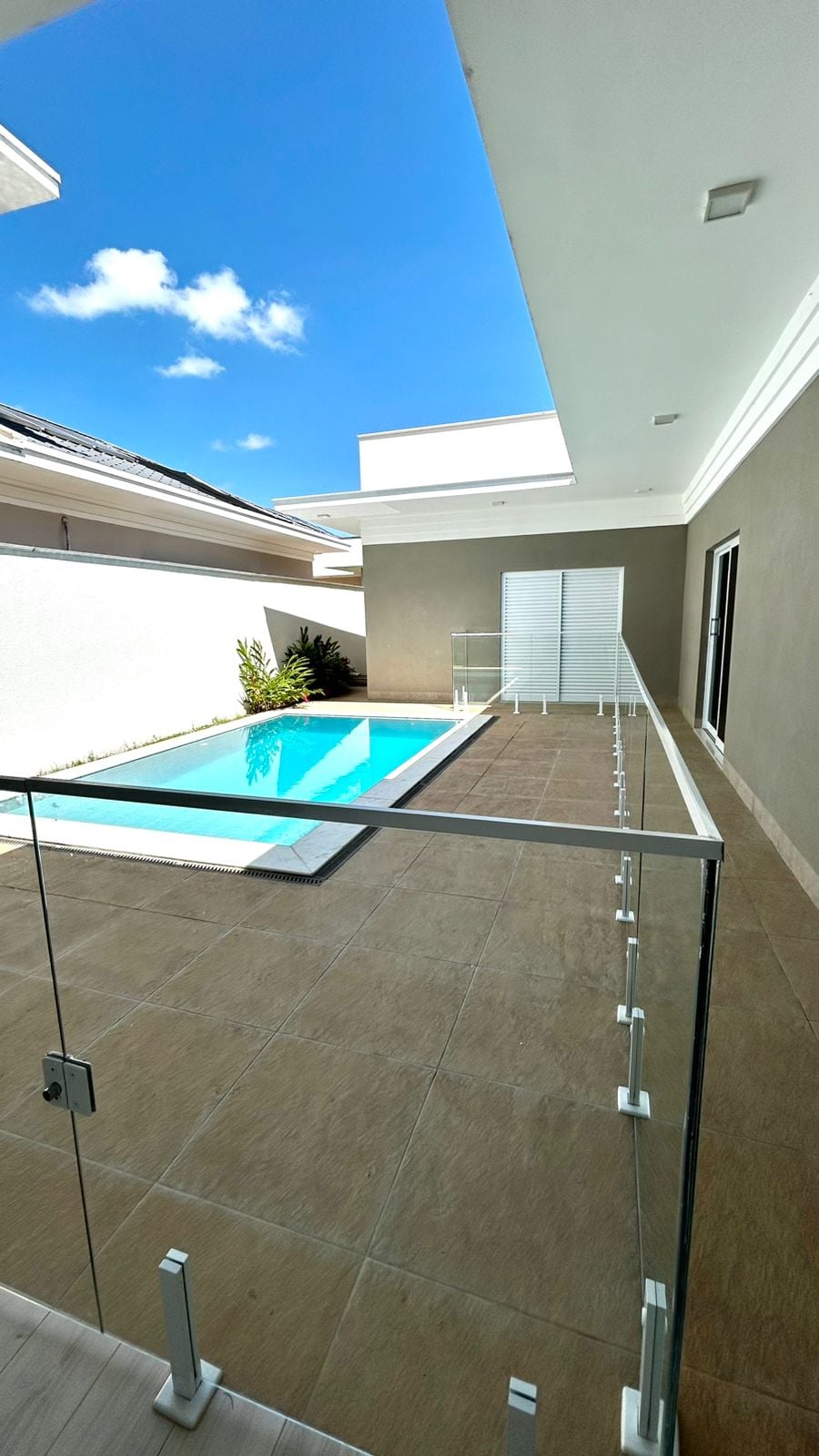 High-end house, with excellent location and security, close to supermarkets, pharmacies, college, fitness center, restaurants and airport. Swimming pool with whirlpool, barbecue, indoor and outdoor kitchen, 2 bedrooms and a master suite with a walk-in closet. Garage for up to 4 cars. House ready for hosting.