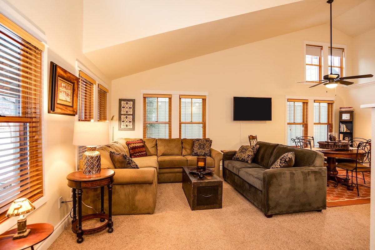 Prime Sister's location, Safe upscale neighborhood! Newly built condo offers EVERYTHING you expect without sacrificing a thing! Only 1 block to downtown restaurants/shopping. Leave your car at the unit and walk! Fully stocked Kitchen, comfy king size bed in master, queen size sofa / sleeper in living room! Relax on sofa or the new recliner, excellent wi-if, internet, cable tv, Netflix. Washer/dryer to use too! Pet friendly, under 40 lbs, $35.00 pet fee per pet. This unit is also ADA co