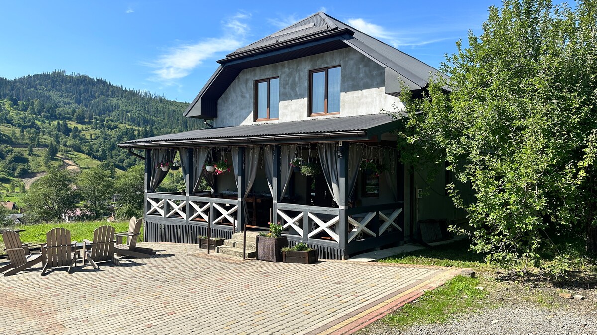 We offer you a wonderful wooden cottage with all facilities in the famous ski resort of Oryavchik-Sveniv. Large area and terrace with grill. The guest house is located near the forest, 4 km from the spouts of the Rives. The Oryavchik River flows through the territory of the plot. The rooms overlook the river, the old 18th-century bell tower and the surrounding mountains.