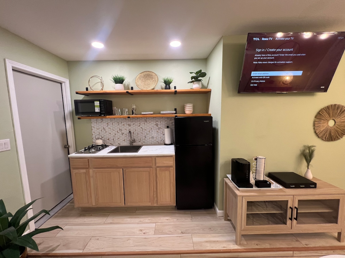Welcome to your sweet oasis! This newly built escape is a true gem, featuring all the amenities you need for comfortable living in a stylish guest house. As a bonus, enjoy cooking on the outdoor grills! The relaxing yard space invites you to unwind. Nestled in a tranquil neighborhood, you’re minutes from niceties. Convenience & privacy are yours with dedicated parking and a private walkway entrance. Ideal blend of comfort and serenity- your perfect retreat.