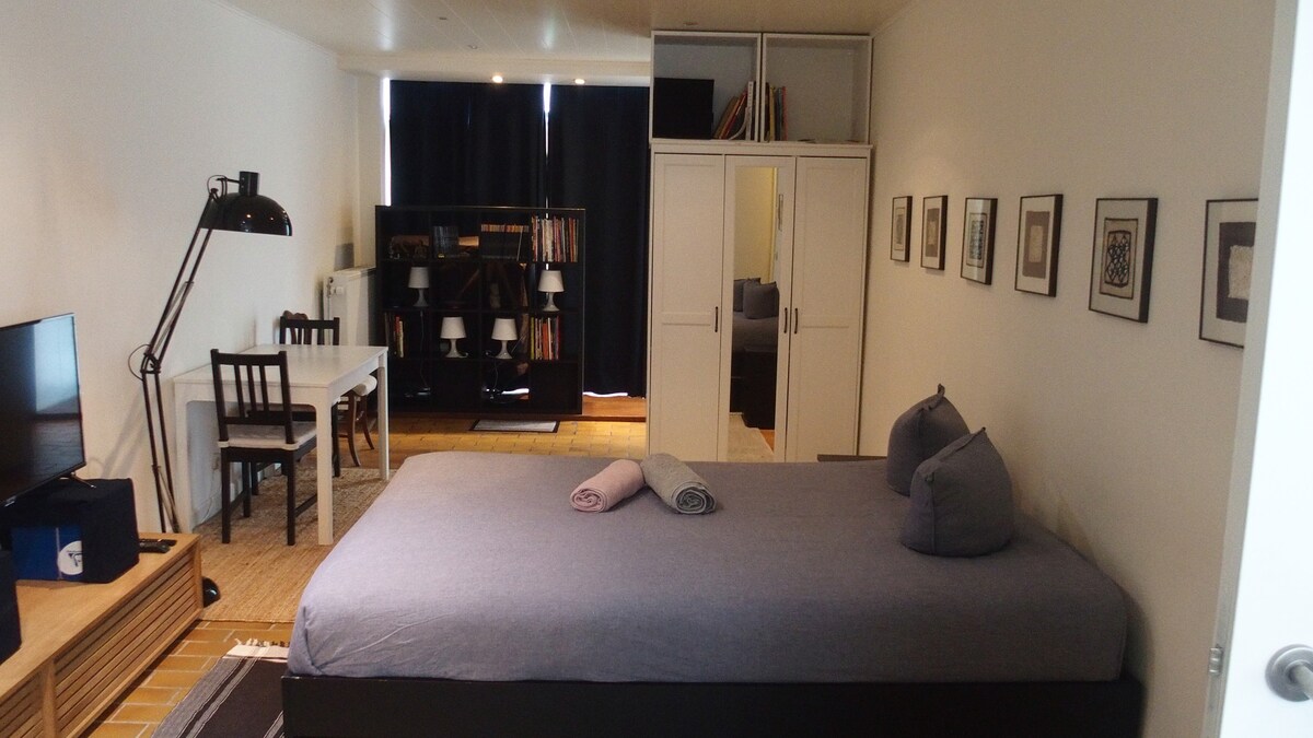 Studio dans une rue calme dans les combles d’un petit château où nous habitons. A 5 min à pied des transports qui offrent un accès direct vers le centre ville (35-40min). Comprend un lit double et un canapé lit et peut accueillir jusqu’à 4 personnes (Salle de douche et toilette séparée.) ⚠️Attention: Il au 3e étage et il n’y a pas d’ascenseur. Parking gratuit à 7 min à pied de la maison. ⚠️ pas de visiteurs autorisés la nuit