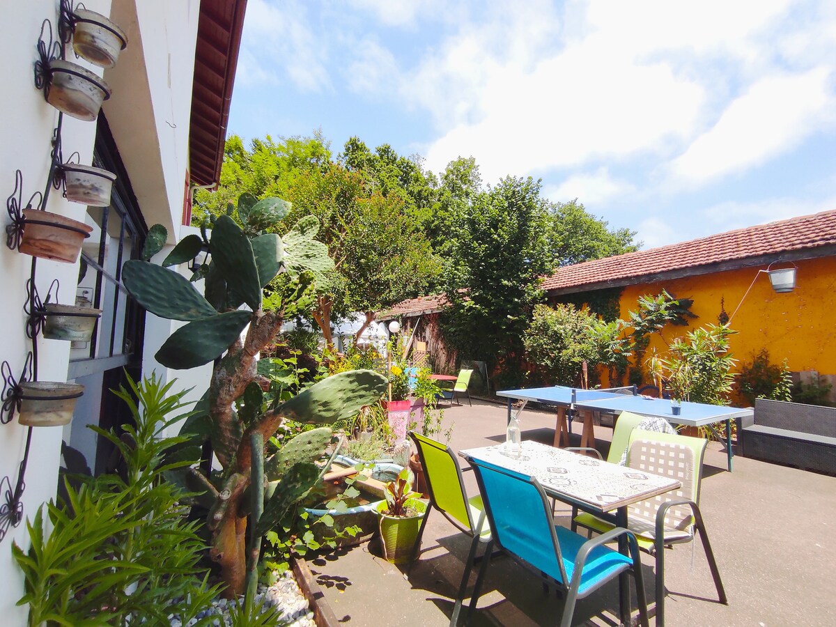 Situé dans un petit village entre Landes et Pays Basque, à 15 min des plages, situé au rez de chaussée de notre habitation, nous vous proposons ce logement de 4couchages. 2 chambres équipées d un lit 160/200. Une cuisine équipée avec lave linge. Salle de douche, WC indépendant. Un séjour spacieux. Climatisation dans 1 chambre et dans la pièce de vie. Profitez d une piscine 10x5 située a l etage, d un coin repas bodega et d un terrain de pétanque. Nous habitons sur place.