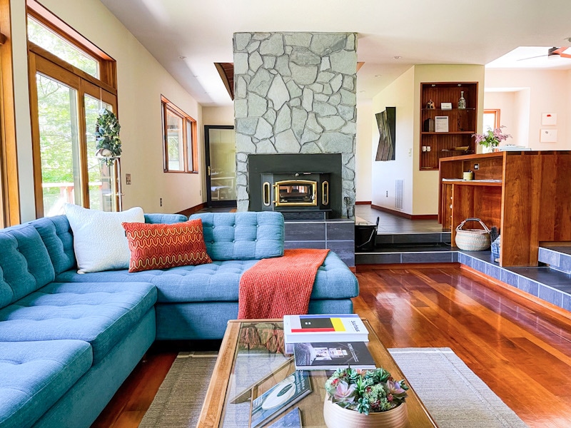 Perched on a hill above the N. Toe River at the end of the road you’ll find Dougs Way, a modern cabin with huge picture windows that frame long range mountain views as if it were art. Surrounded by old oaks and loblolly pines, the property is quiet and never cookie cutter. You’ll love the Japanese soaking tub, two-sided fireplace, gourmet kitchen, robust coffee/tea setup, and the true craftsmanship found in the artwork and handmade details like the bent cherrywood “cloud” above the dining table!