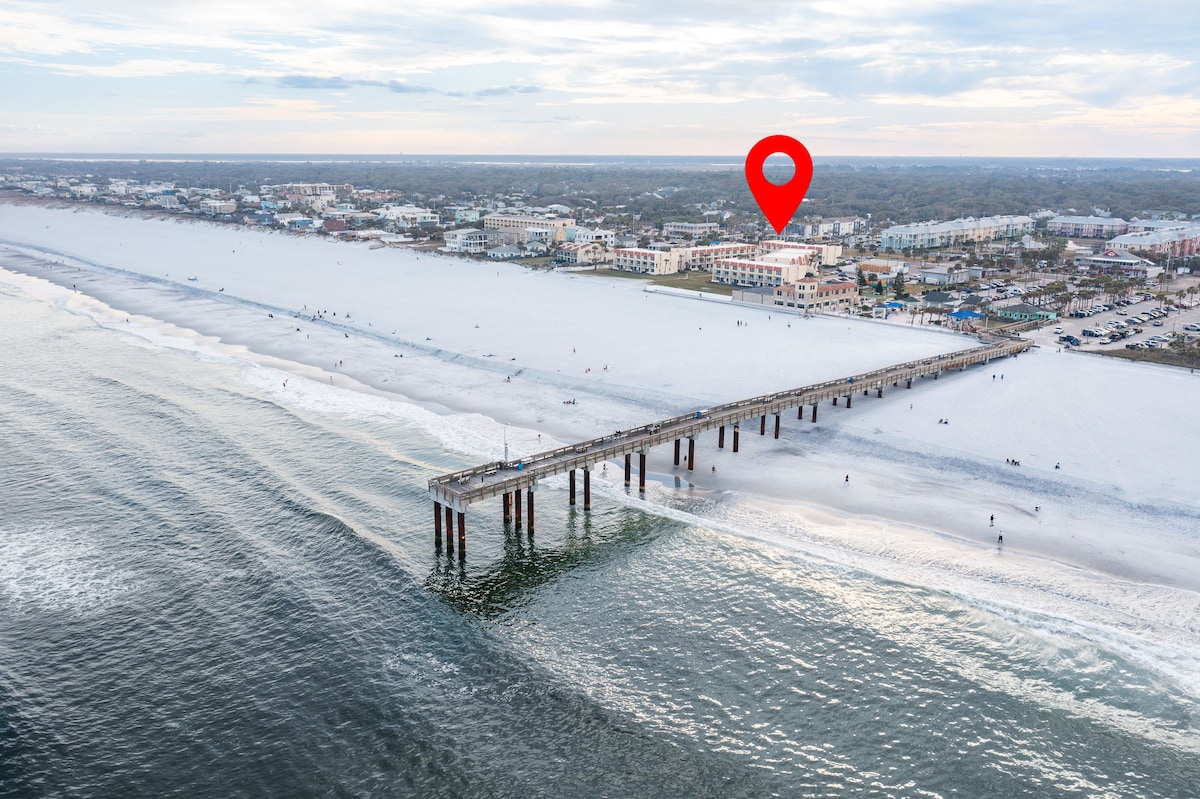 Our little slice of paradise is situated in the heart of St. Augustine Beach right on A1A Beach Blvd. Our unit, recently renovated, is just steps from the beach and closest building to the pool! 2 outdoor pools (1 heated in winter), 5 hot tubs & tennis courts. Perfect location to enjoy our beautiful beaches & all that Anastasia Island has to offer! Historic St. Augustine is less than 7 miles away. Unit is equipped with everything you need for a perfect beach vacation!