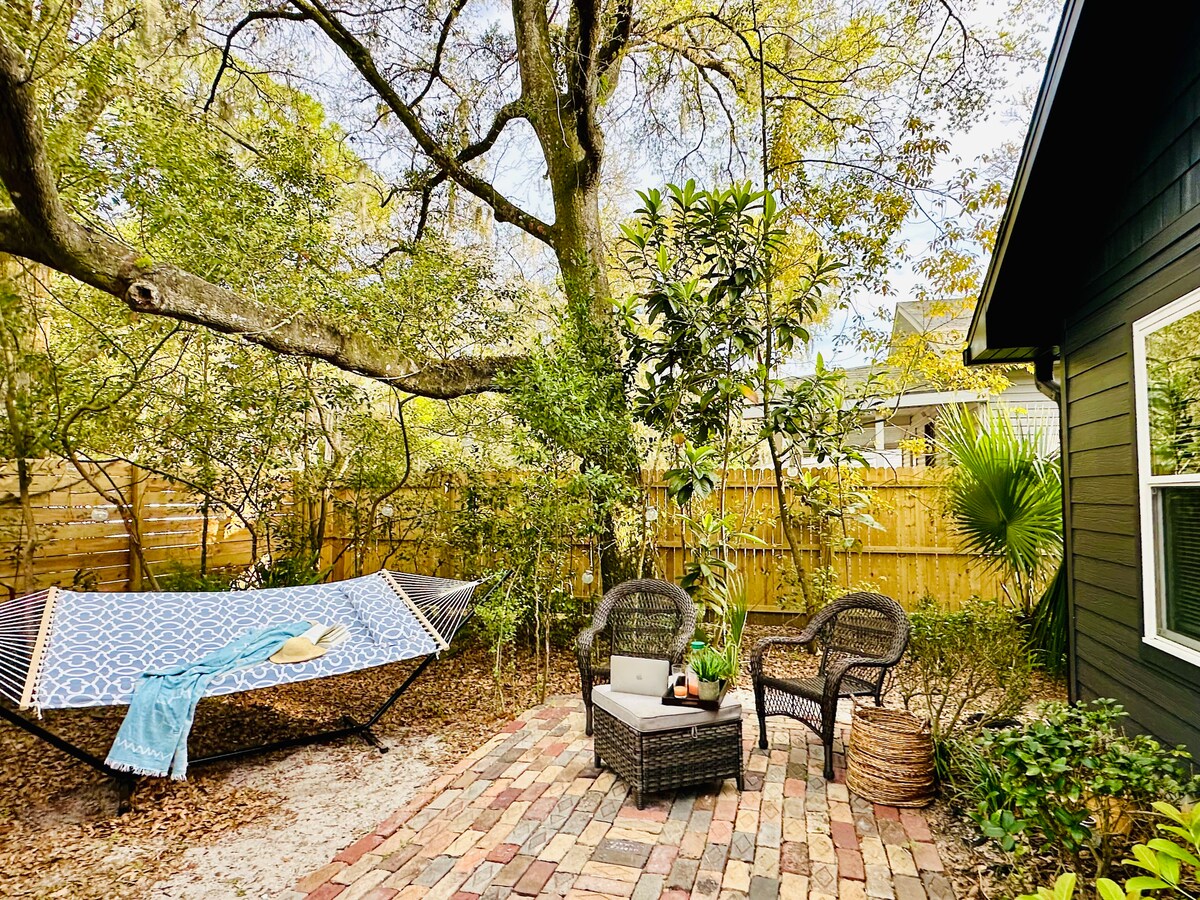 Discover serenity in this charming, hidden gem nestled in a quaint downtown neighborhood. A short stroll will lead you to vibrant festivals at Francis Field and St. Augustine's finest dining, bars, tours, and more. Art, music, and local culture are woven into the very fabric of this locale. Whether you're unwinding with a movie, savoring morning coffee in the backyard, or lounging on the front patio, we've curated the perfect escape.