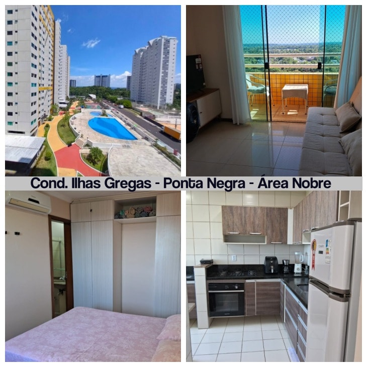 Relax with Style and Safety in Manaus! This gated condominium apartment offers 24-hour comfort and security. Close to Eduardo Gomes Airport and Ponta Negra Beach, with supermarket, laundry and food court nearby. The property includes an electronic lock, private parking with a parking meter, elevator, swimming pool and 24-hour Youmart. The apartment has a kitchen equipped with coffee maker, sandwich maker, microwave and Cooktop, plus electric shower for relaxing bath. Enjoy your stay!