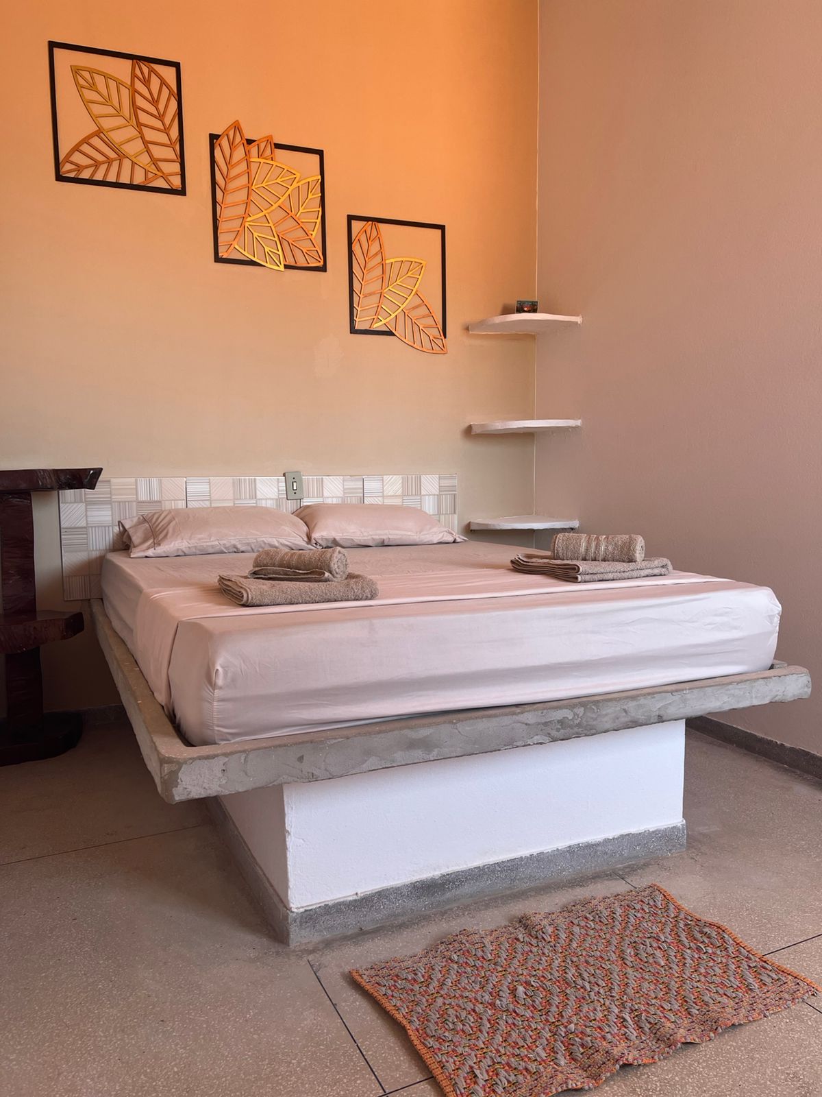 Desperte com a sinfonia dos pássaros em nosso quarto duplo mais encantador! Espaçoso e com o cantar da natureza como sua trilha sonora pessoal, este é o refúgio perfeito para casais ou viajantes que buscam conexão autêntica com Barra Grande. Seu Cantinho Inclui: Cama confortável Ventilador, espelho e cabideiro Viva a Experiência Completa: Banheiro compartilhado (sempre impecável) Cozinha totalmente equipada Áreas comuns que convidam a novas amizades Café da manhã caseiro do Abel incluído