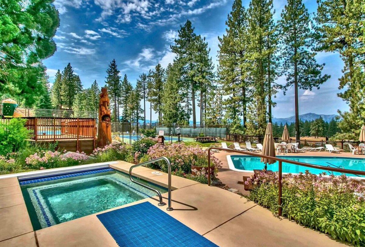 Beautiful mountain and lake views. Situated atop the eastern ridge of the Sierra Nevada Mtns, our condo provides the perfect place to base your vacation stay in Lake Tahoe. Walking access to the Tahoe Rim Trail and just a couple miles to numerous beach options, this is a natural paradise. Plenty of off street parking in front of the condo, and just a few steps to the pool and hot tub make this location extremely convenient.(pool now open, hot tubs still closed till regulations relaxed)