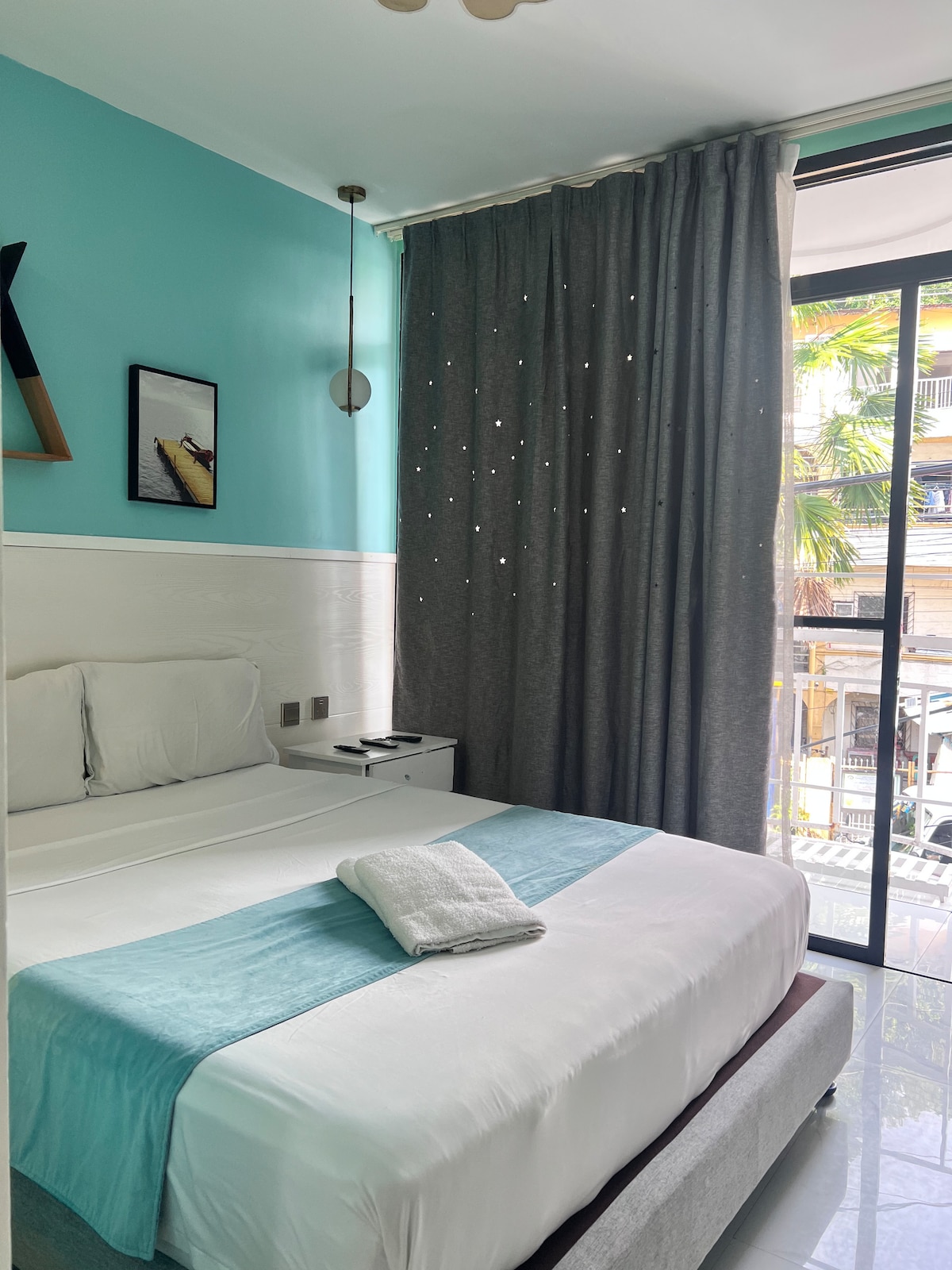 This beachfront hotel situated at Station 3 radiates a laid-back yet chic atmosphere, perfectly positioned to provide stunning views and direct access to the white sandy shore. Framed by towering palm trees, the hotel’s modern façade features a bright white 2 storey building that offer guests a relaxing retreat. We have around 24 newly renovated rooms equipped with smart TVs, ACs, hot and cold shower and Queen sized high quality mattresses.