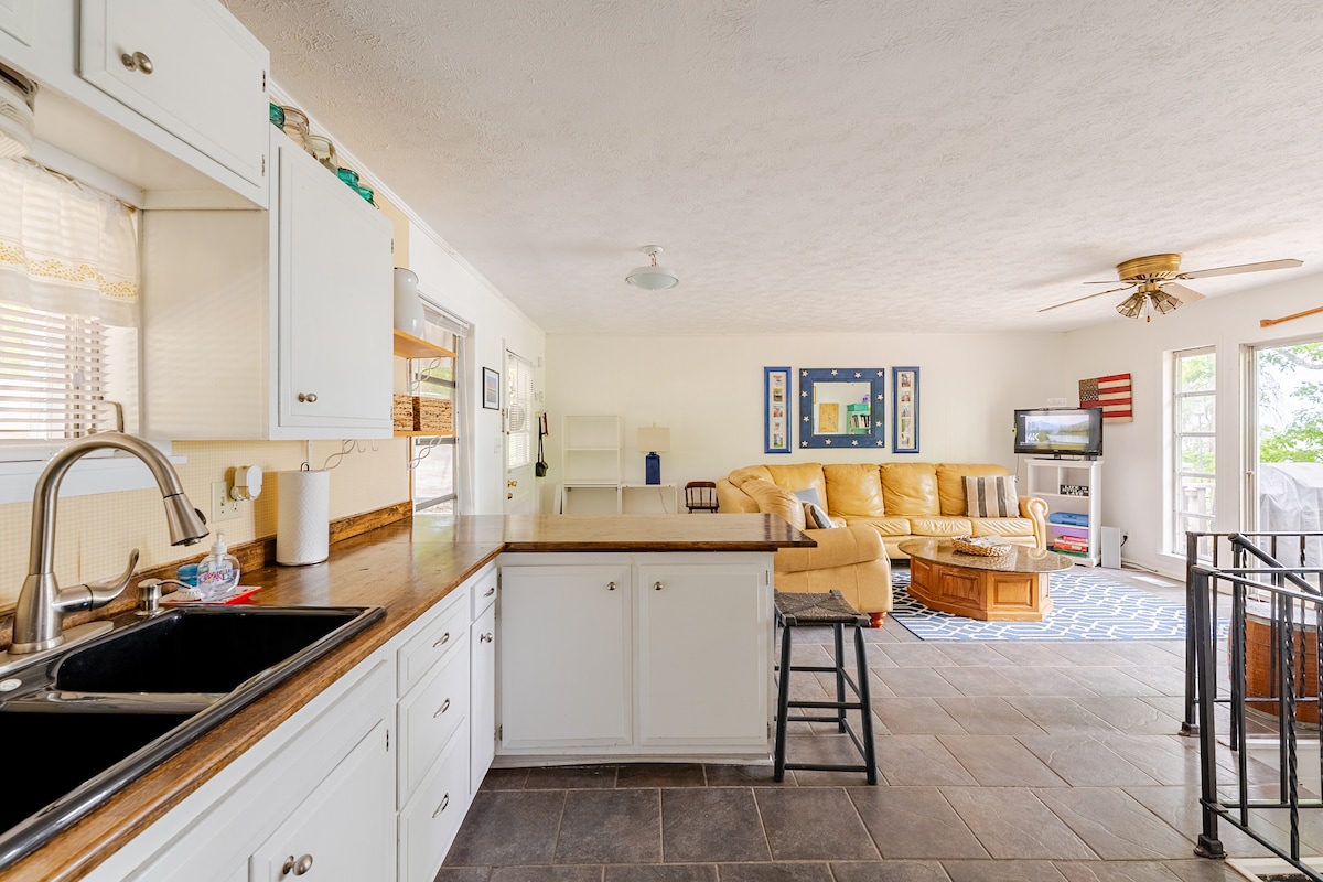 Come play at the lake. Private 1-bdrm basement apartment lakefront on Lake Logan Martin. Beautiful sunset views from LR and Bdrm. Queen bed, rain shower in private bath, kitchen with stovetop (no oven), living room and bedroom w/smart tvs. Dock, 2 kayaks, hammock, outdoor shower, and fire pit access. Seventeen miles from Talladega Speedway. We are available on site, but will respect your privacy. Apt has private entrance and designated parking.