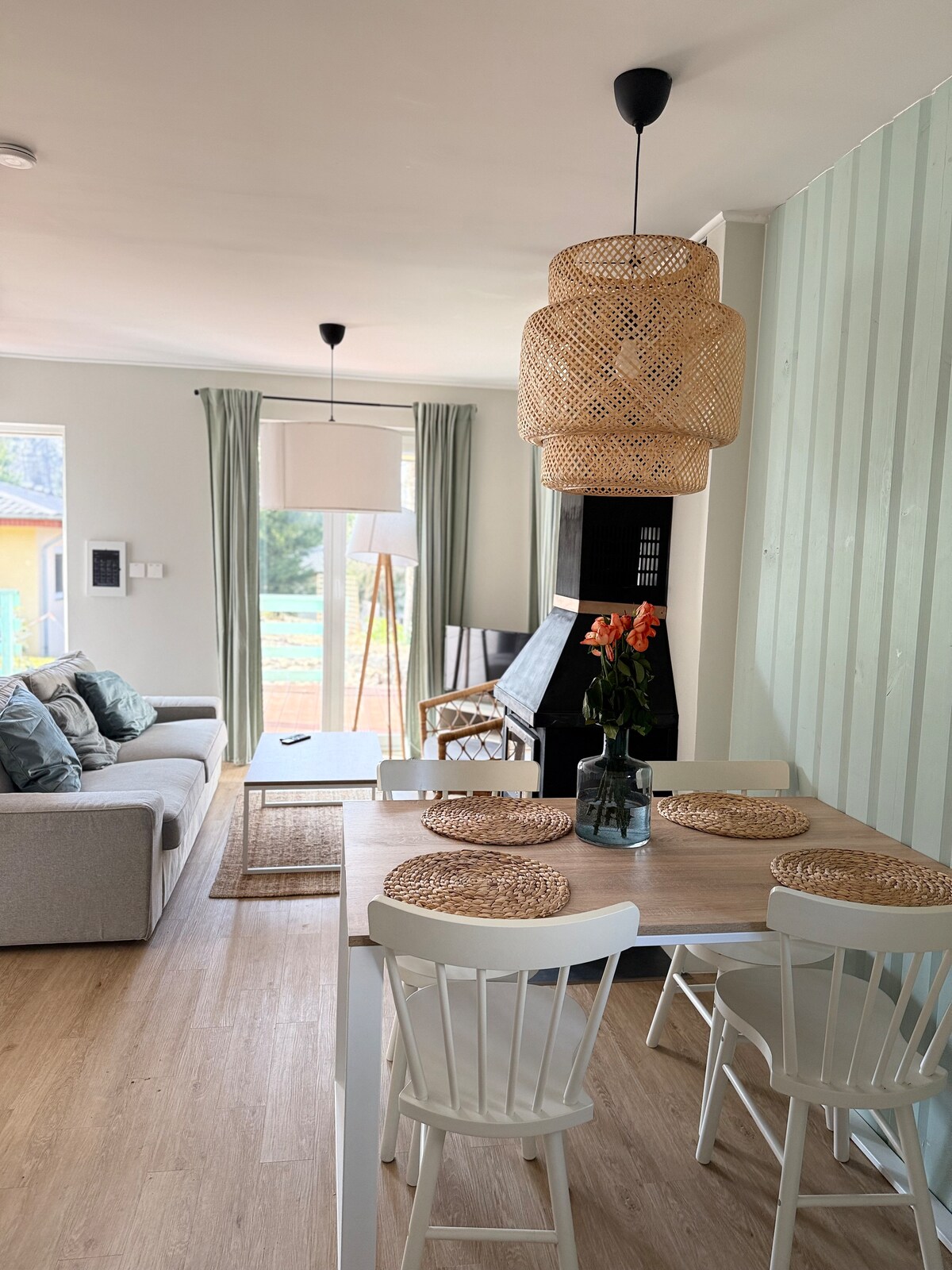Relax in a modern, freshly finished cottage on one of the cleanest lakes in Poland – Niesulice, Lake Niesłysz. This is a place made for families, couples, and groups of friends who appreciate comfort and proximity to nature. 🏡 Cottage for 6 people – new, opened in 2024 Bohemian 💧 Lake – 5 minutes away 🌞 Large glazing, patio with outdoor furniture, fire pit, and BBQ grill Scandinavian 🌿 style – bright wood, modern details 🍽️ Possibility to order catering
